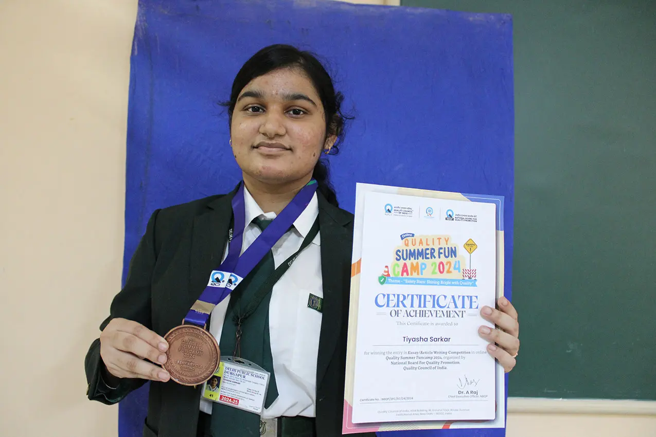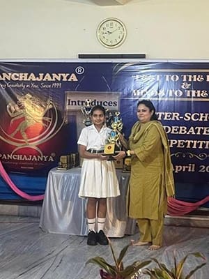 দুর্গাপুরের দিল্লি পাবলিক স্কুল অত্যন্ত গর্বের সাথে ঘোষণা করছে যে “পাঞ্চজন্য” আয়োজিত “সাংস্কৃতিক নৃত্যের শক্তি উদযাপন” শীর্ষক আন্তঃস্কুল নৃত্য বিতর্ক প্রতিযোগিতায় সপ্তম শ্রেণির ছাত্রী ঋদ্ধিমা চৌবে দ্বিতীয় রানার-আপ হয়েছে।