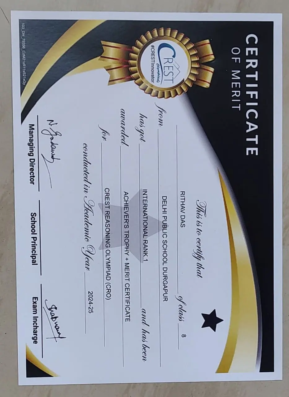 CLASS 4D — DEBARPAN DAS (ZONAL RANK – 1, INTERNATIONAL RANK – 4)