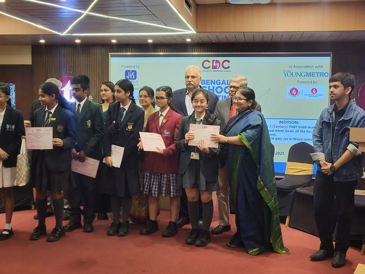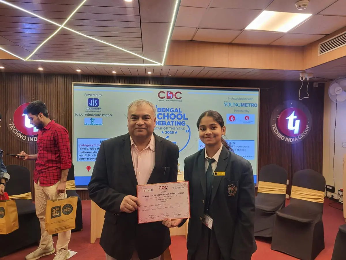 সমাদৃতা রায়, নিমিশা আগরওয়াল এবং অহনা কাজীকে নিয়ে গঠিত একটি দল সম্মানীয় ‘বেঙ্গল স্কুল ডিবেটিং স্টার অফ দ্য ইয়ার ২০২৫‘-এ দিল্লি পাবলিক স্কুল, দুর্গাপুর-এর প্রতিনিধিত্ব করেছে।