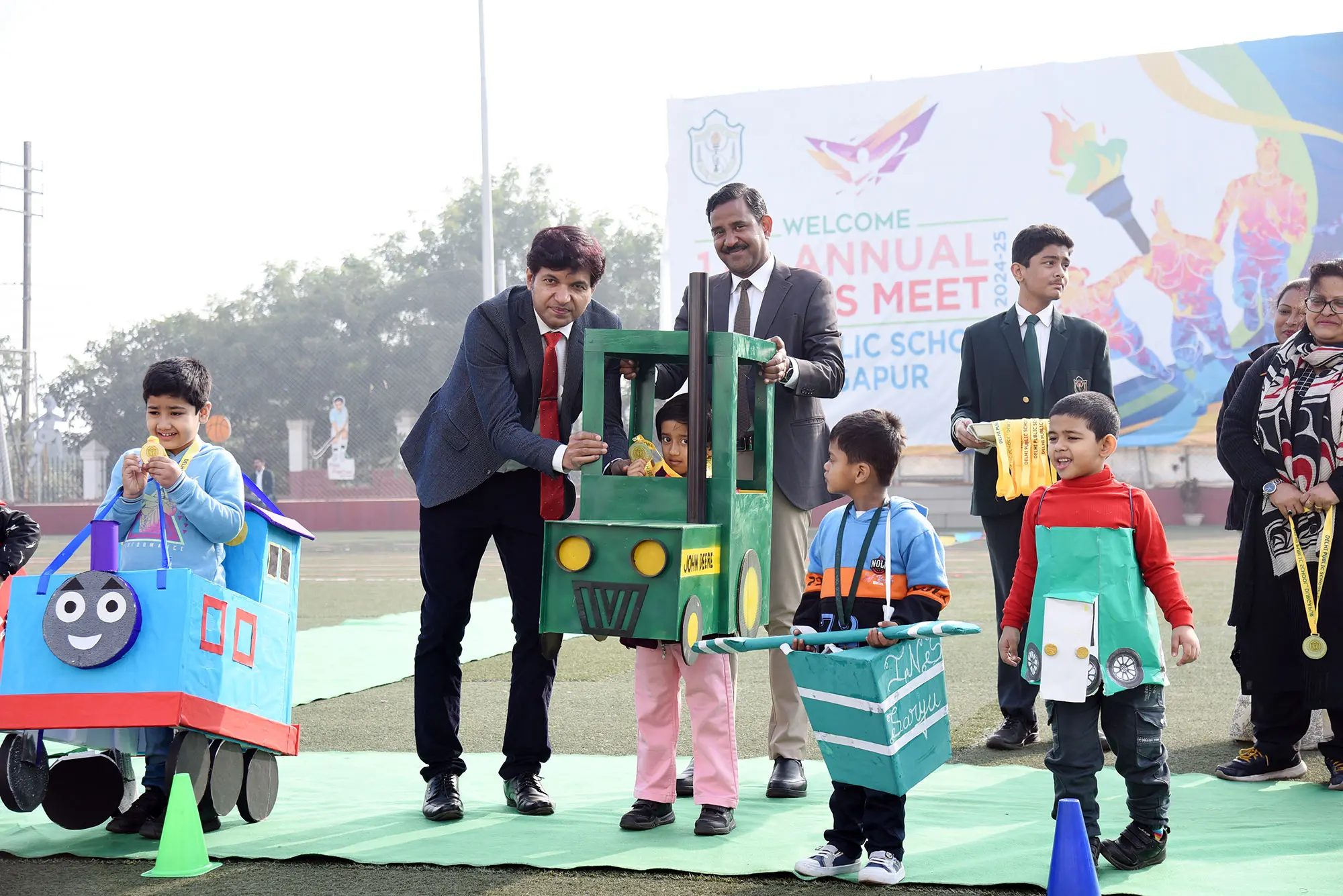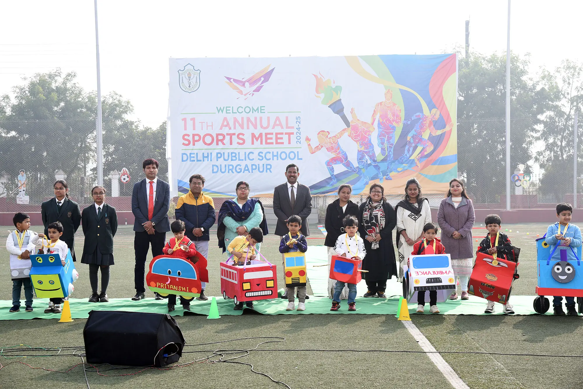 দিল্লি পাবলিক স্কুল দুর্গাপুরের প্রাক-প্রাথমিক বিভাগ অত্যন্ত উৎসাহ ও উদ্দীপনার সাথে ক্রীড়া দিবস উদযাপন করেছে! এই অনুষ্ঠানে পরিবহনের বিভিন্ন মাধ্যমকে অবলম্বন করে একটি প্রাণবন্ত ফ্যান্সি ড্রেস প্যারেড অনুষ্ঠিত হয়। এই হৃদয়গ্রাহী প্রদর্শনীটি ছিল যেন বৈচিত্রের মধ্যে ঐক্য। এরপর অনুষ্ঠিত হয় নিখুঁতভাবে সমন্বিত চেয়ার ড্রিল এবং রোমাঞ্চকর দৌড় প্রতিযোগিতা। আনন্দকে আরও বাড়িয়ে দিয়ে, বুলবুল স্কাউট এবং গাইডরা শৃঙ্খলা এবং দলবদ্ধতার প্রদর্শন করে একটি অনুপ্রেরণামূলক পারফর্মেন্স প্রদর্শন করে। মজাদার কার্যকলাপে অভিভাবকদের উৎসাহী অংশগ্রহণ দিনটিকে আরও বিশেষ করে তুলেছিল, সম্প্রদায় এবং ঐক্যের একটি শক্তিশালী অনুভূতি জাগিয়ে তুলেছিল। এটি সত্যিই আনন্দ, দলবদ্ধতা এবং ক্রীড়ানুরাগের একটি আনন্দদায়ক উদযাপন ছিল!