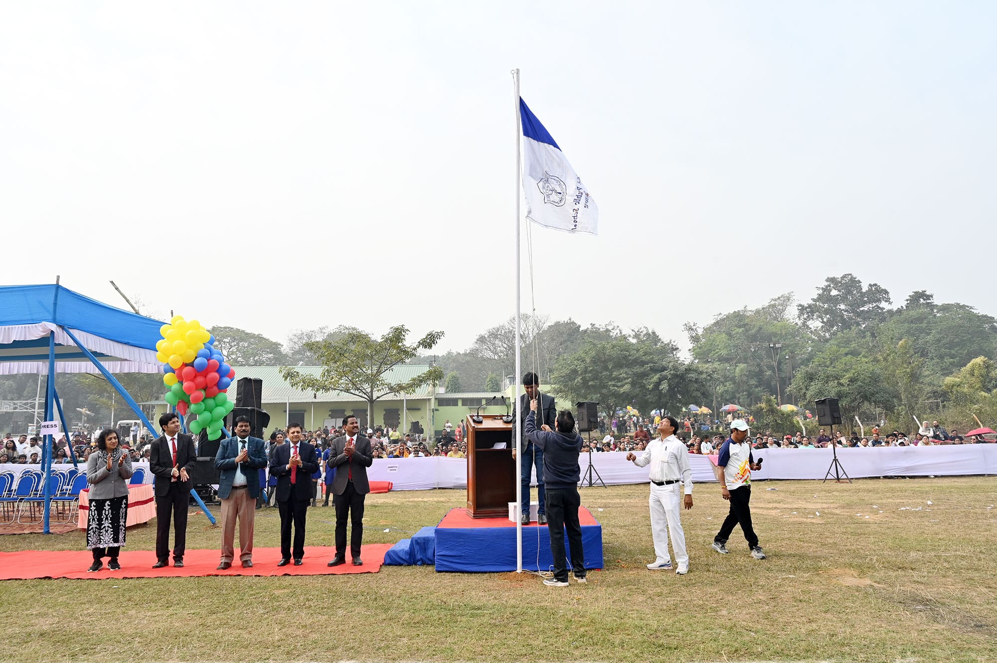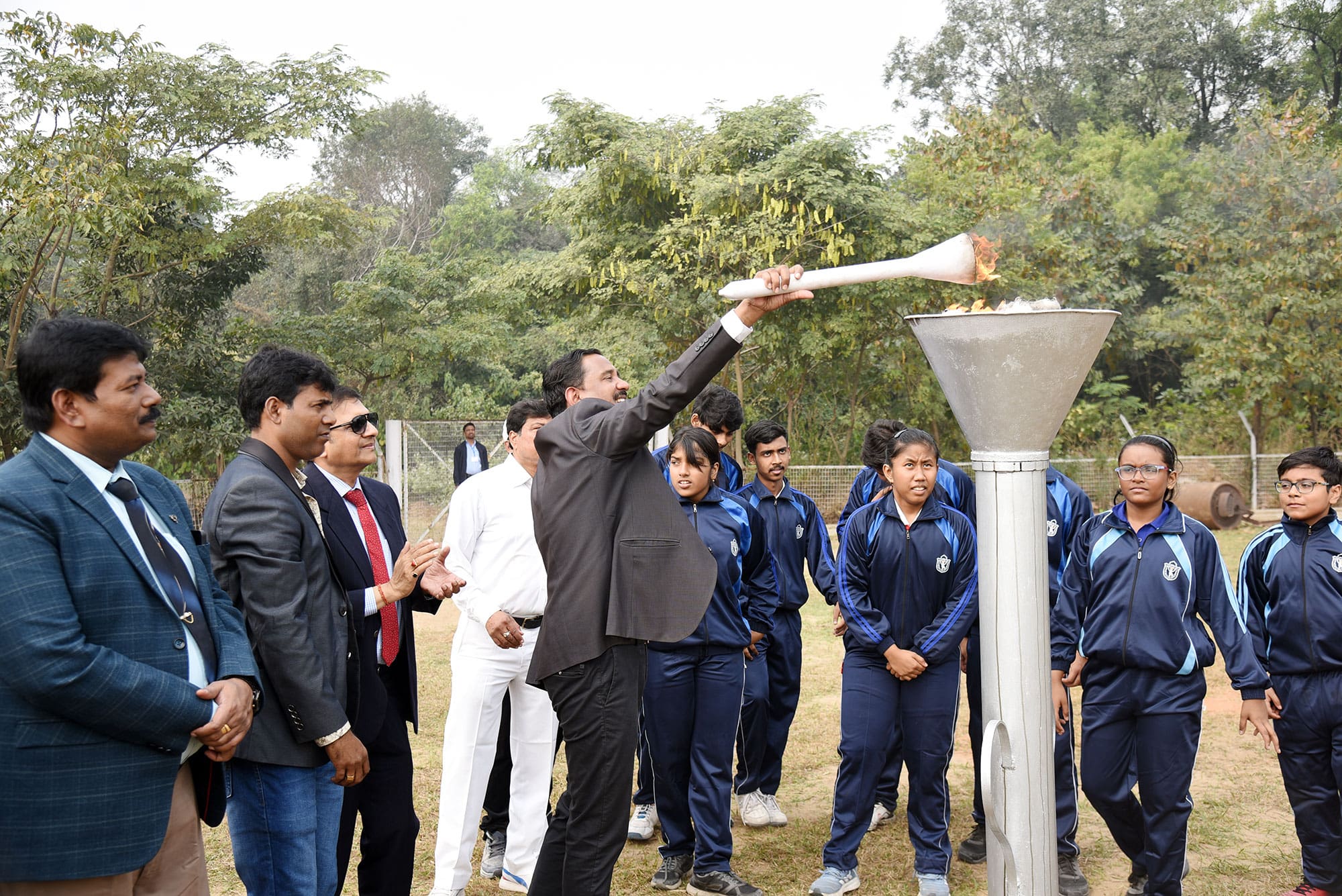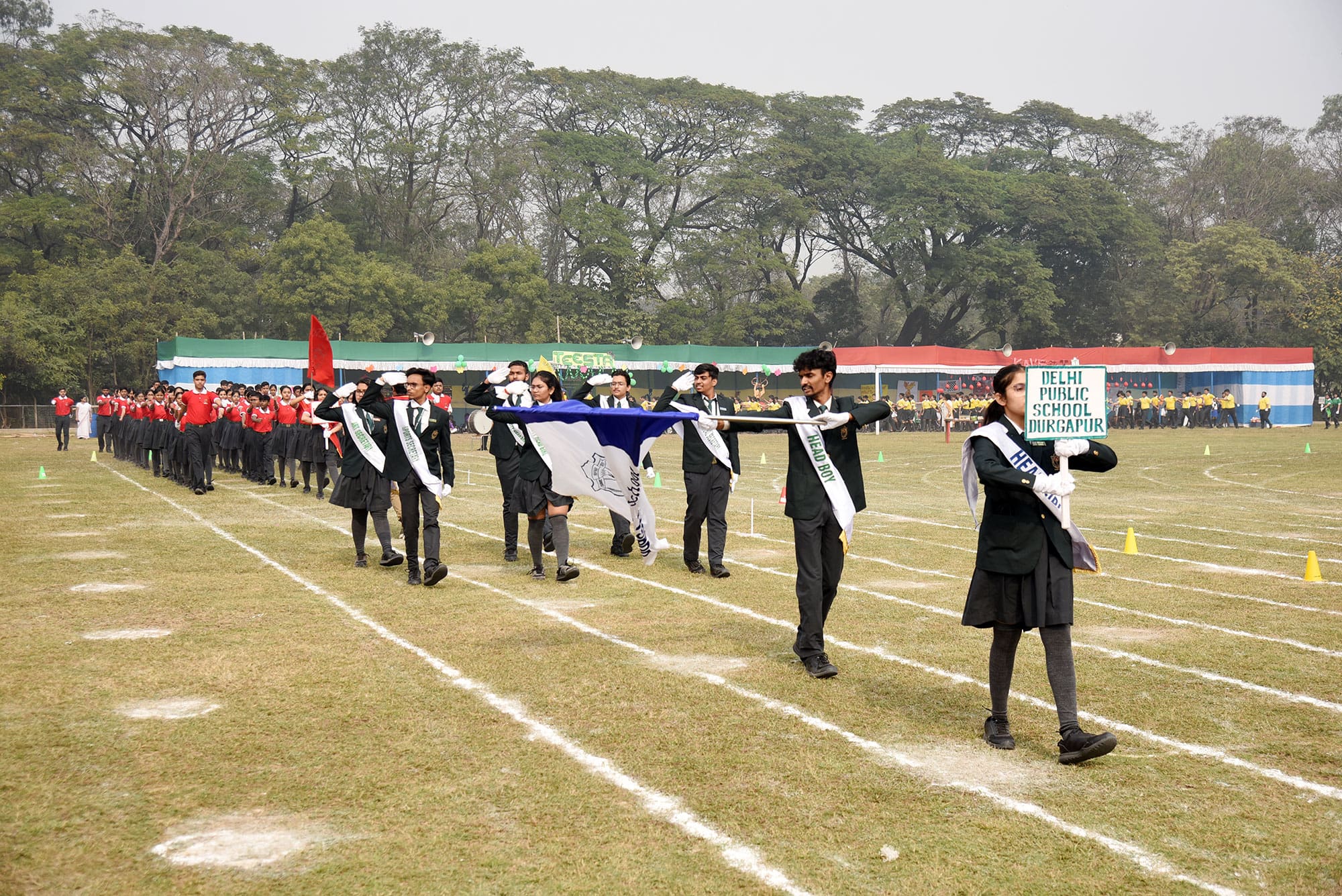 Delhi Public School, Durgapur, hosted its 11th Annual Sports Day on December 21, 2024, at the Alloy Steel Plant Stadium. The event was graced by former Indian athlete Sri Rahamatulla Molla as the Chief Guest, who inspired students with his message on the significance of sports in character-building. The day began with a grand inauguration, featuring marchpast by the four houses, vibrant drills, and a stirring performance by the school orchestra. Students demonstrated their skills through nail biting track and field events and captivating displays of martial arts. Medals and trophies were presented to winners, including the Best Athlete and the Champions Trophy. The day celebrated the spirit of sportsmanship, teamwork, and excellence and concluded with a heartfelt vote of thanks by the Head Girl, Ritika Kumari.