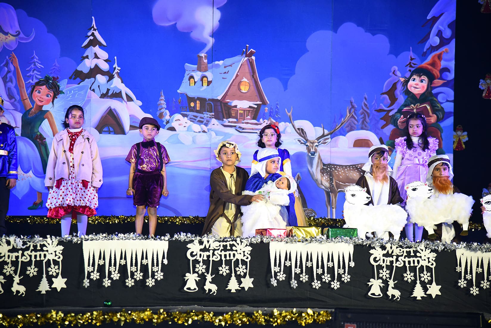 A little star’s journey through enchanting worlds reminded us that Christmas is love shared, joy multiplied, and togetherness cherished. Tiny voices sang like snowflakes of hope, and little feet twirled in dances that spoke of wonder. The Nativity scene touched every soul, while the UKG and Class 1 medley dance filled the air with pure delight.