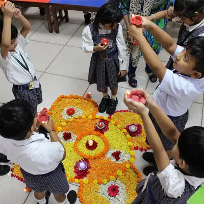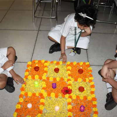 Pre-Primary section of Delhi Public School Durgapur embraced the festive spirit with a colourful flower decoration activity. Little hands eagerly arranged flowers into delightful patterns along with lights filling the school with fragrance and joy. The children’s enthusiasm and bright smiles made the event truly heart warming, illuminating their surroundings with the joyful spirit of Deepawali.