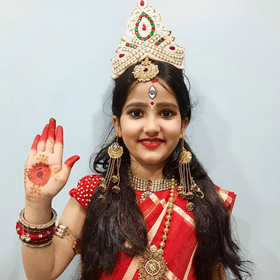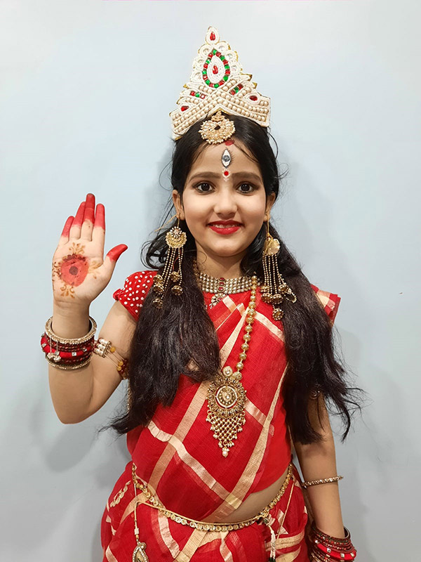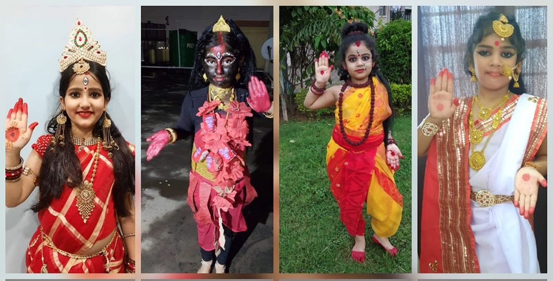 Delhi Public School, Durgapur streamed a special programme live on virtual platforms to celebrate and rejoice Durga Puja on October 9, 2021. The celebration commenced with the iconic Durga Puja welcome Song -“Ogo Aamar Agomoni Alo Jalo Pradeep Jalo Jalo, Ogo Aamar Agomoni Aalo” and was followed by an array of spectacular acts. The students, teachers and parents were greeted by the Principal Shri Umesh Chand Jaiswal who wished them happiness, health and prosperity. The riveting performance of the skit, screening the anecdote of Kalketu and Phullora, as depicted in the Chandimangal Kavya, presented the story of Goddess Durga in a light that was unseen and unprecedented.The skit made the way for a medley of vivid dance performances by the students, vindicating the strength and courage that the different avatars of the Devi epitomise. This stunning display of devotion and finery saw its culmination with the vote of thanks, by the Head Boy of the school, Akshat Khaitan.