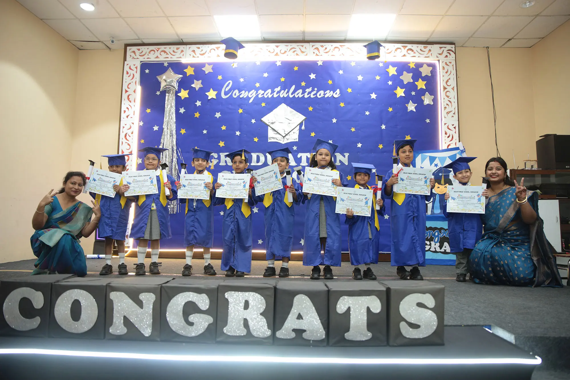 Delhi Public School, Durgapur, rejoiced in the heartwarming Felicitation Ceremony of our UKG stars on GRADUATION DAY on March 12, 2025, marking the proud transition of our kindergarteners to the primary wing! With beaming smiles and twinkling eyes, our tiny graduates donned their adorable graduation caps, stepping confidently into a new chapter of learning and discovery. Parents watched with pride as the students were presented Certificates of Graduation, celebrating the hard work, growth, and enthusiasm of these young achievers. As they embark on this exciting journey, we wish them endless success, happiness, and a future filled with brilliance!