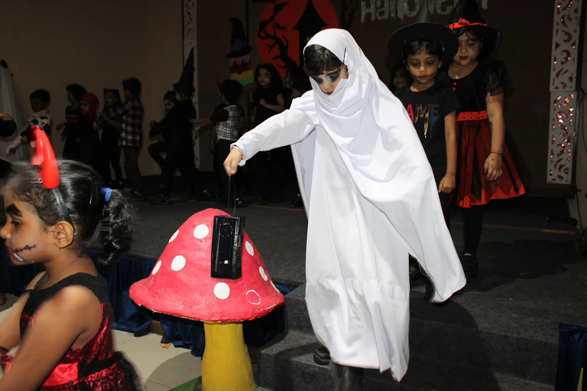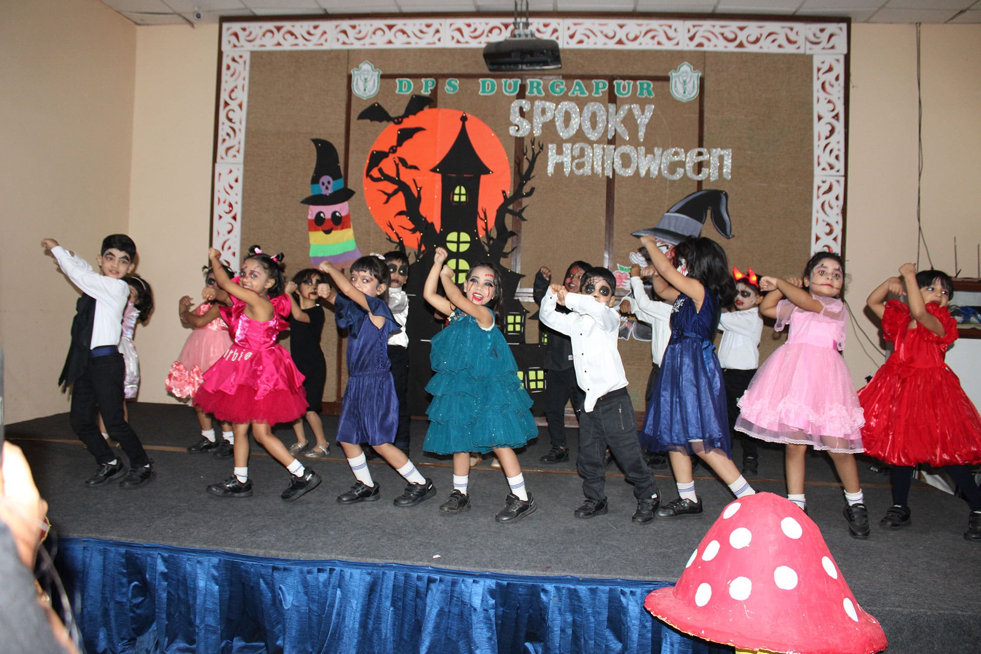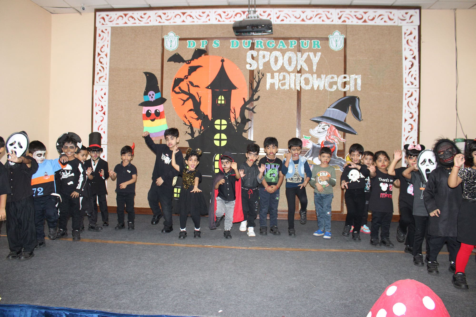 Delhi Public School Durgapur transformed its pre-primary section into a thrilling world of chills and thrills to celebrate Halloween, creating a spine-tingling atmosphere with haunting music and an eerie ambiance. The young students were all set to dance to the uncanny beats. The little ones arrived dressed in quirky costumes, each trying to outdo the other with their spooky flair. The Halloween event was packed with enjoyment and laughter, and everyone went home with cherished memories and a spirit of playful excitement.