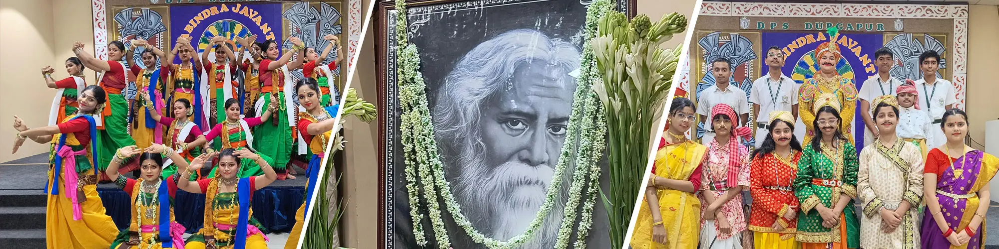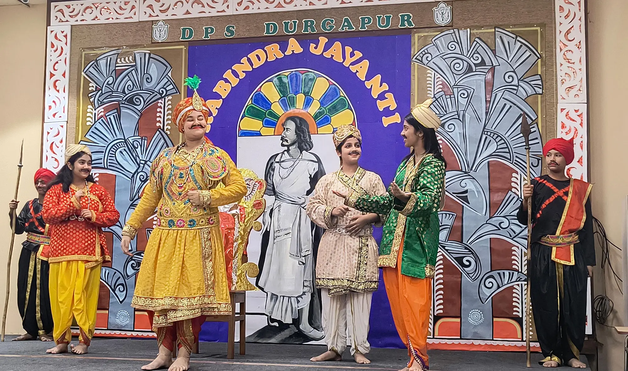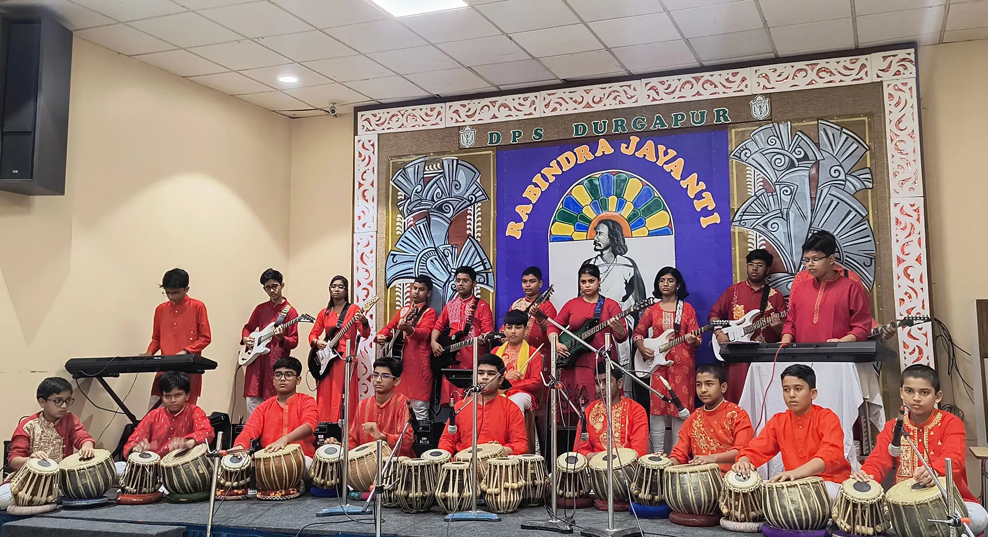 Delhi Public School Durgapur celebrated the 164th birth anniversary of Rabindranath Tagore with vibrant cultural splendour. The event commenced with the lighting of the ceremonial lamp and floral tribute to Gurudev, followed by a welcome address by the Principal- Sh Umesh Ch. Jaiswal. Students presented soulful songs penned  and composed by the Gurudev, an instrumental fusion, and a humorous play ‘Juto r Abishkar’. A multicultural dance performance in five languages paid tribute to Tagore’s global legacy. The celebration concluded with the National Anthem and expressions of gratitude, honouring Tagore’s vision of unity, creativity, and cultural pride.