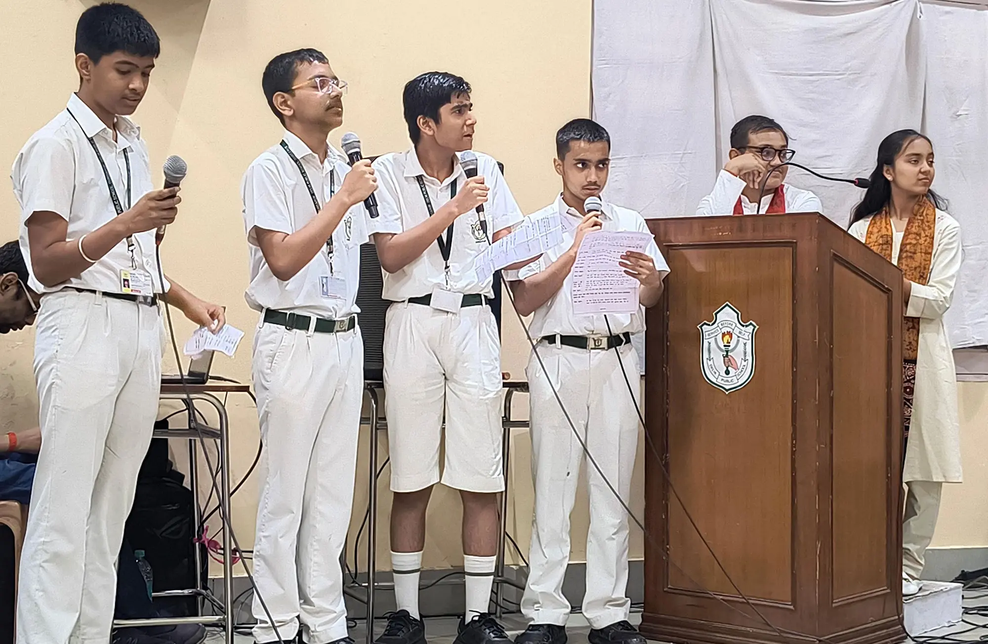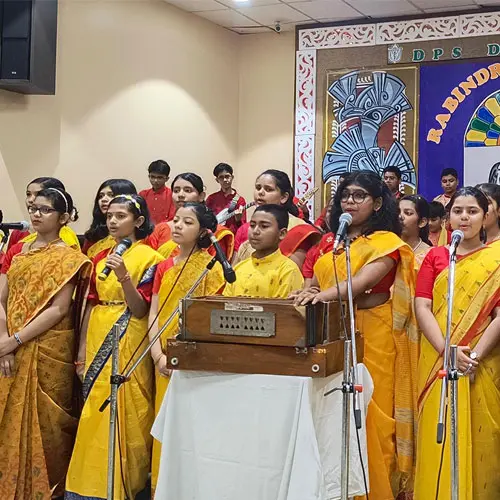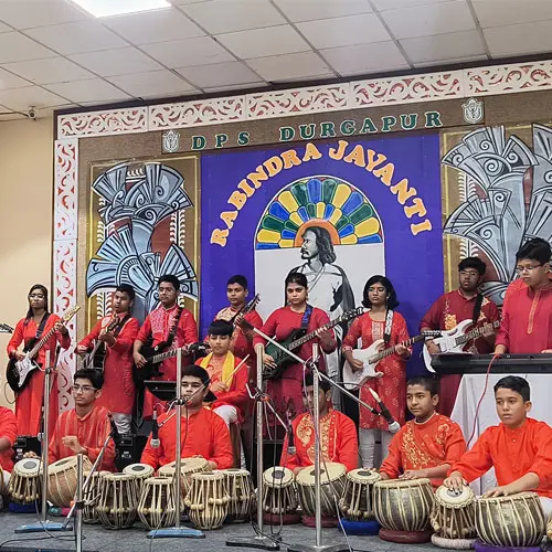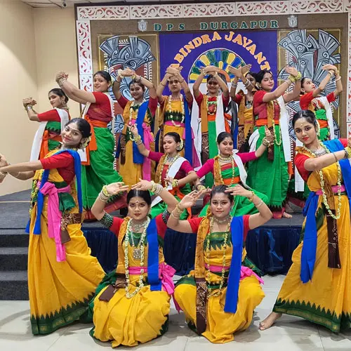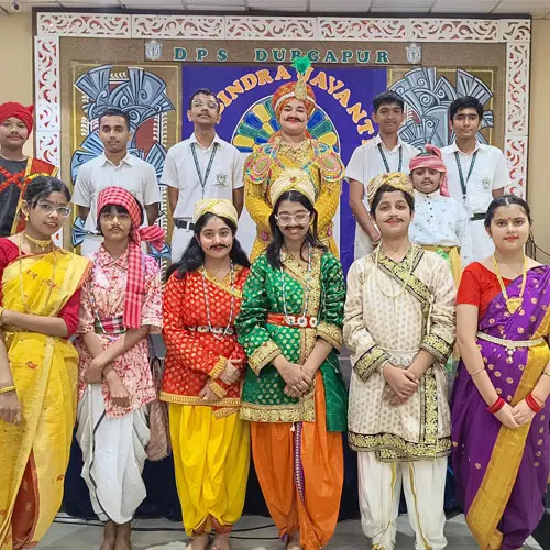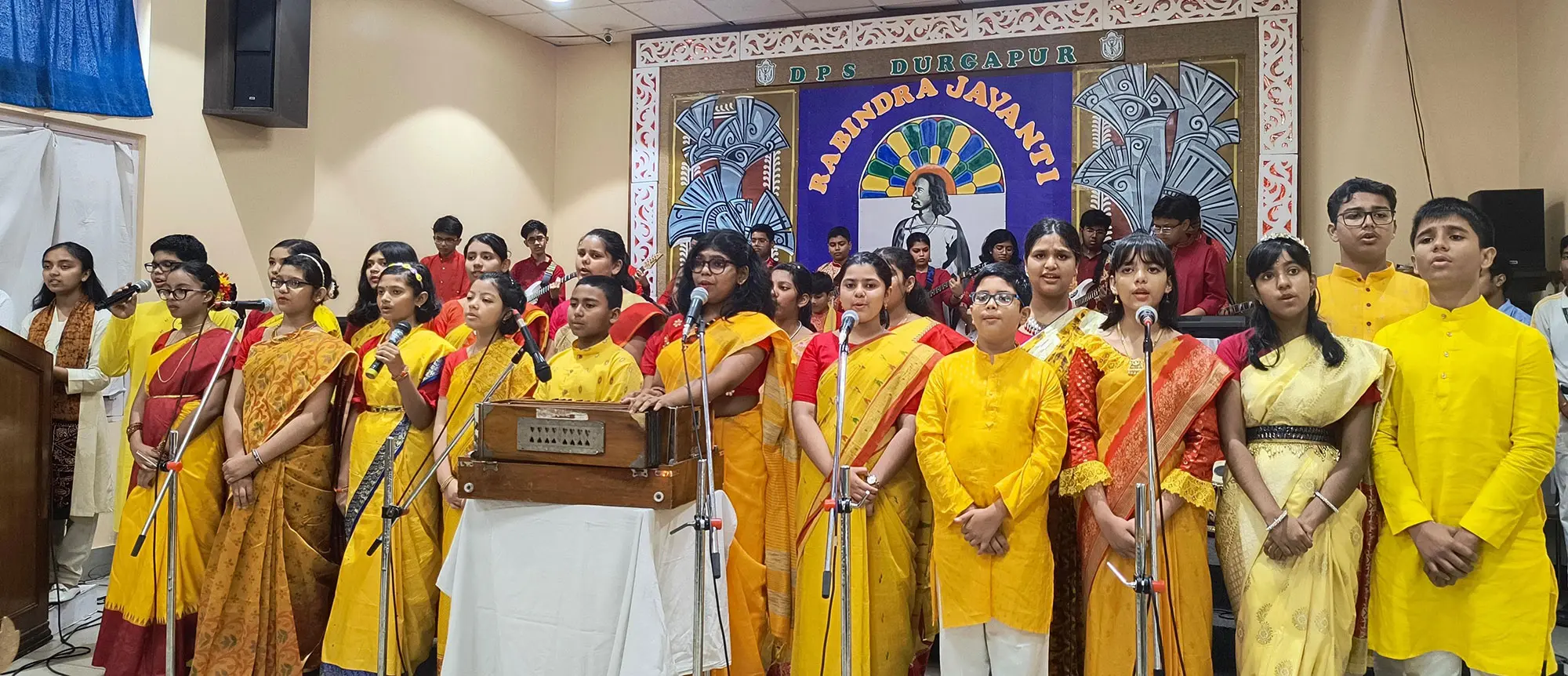 Delhi Public School Durgapur celebrated the 164th birth anniversary of Rabindranath Tagore with vibrant cultural splendour. The event commenced with the lighting of the ceremonial lamp and floral tribute to Gurudev, followed by a welcome address by the Principal- Sh Umesh Ch. Jaiswal. Students presented soulful songs penned  and composed by the Gurudev, an instrumental fusion, and a humorous play ‘Juto r Abishkar’. A multicultural dance performance in five languages paid tribute to Tagore’s global legacy. The celebration concluded with the National Anthem and expressions of gratitude, honouring Tagore’s vision of unity, creativity, and cultural pride.