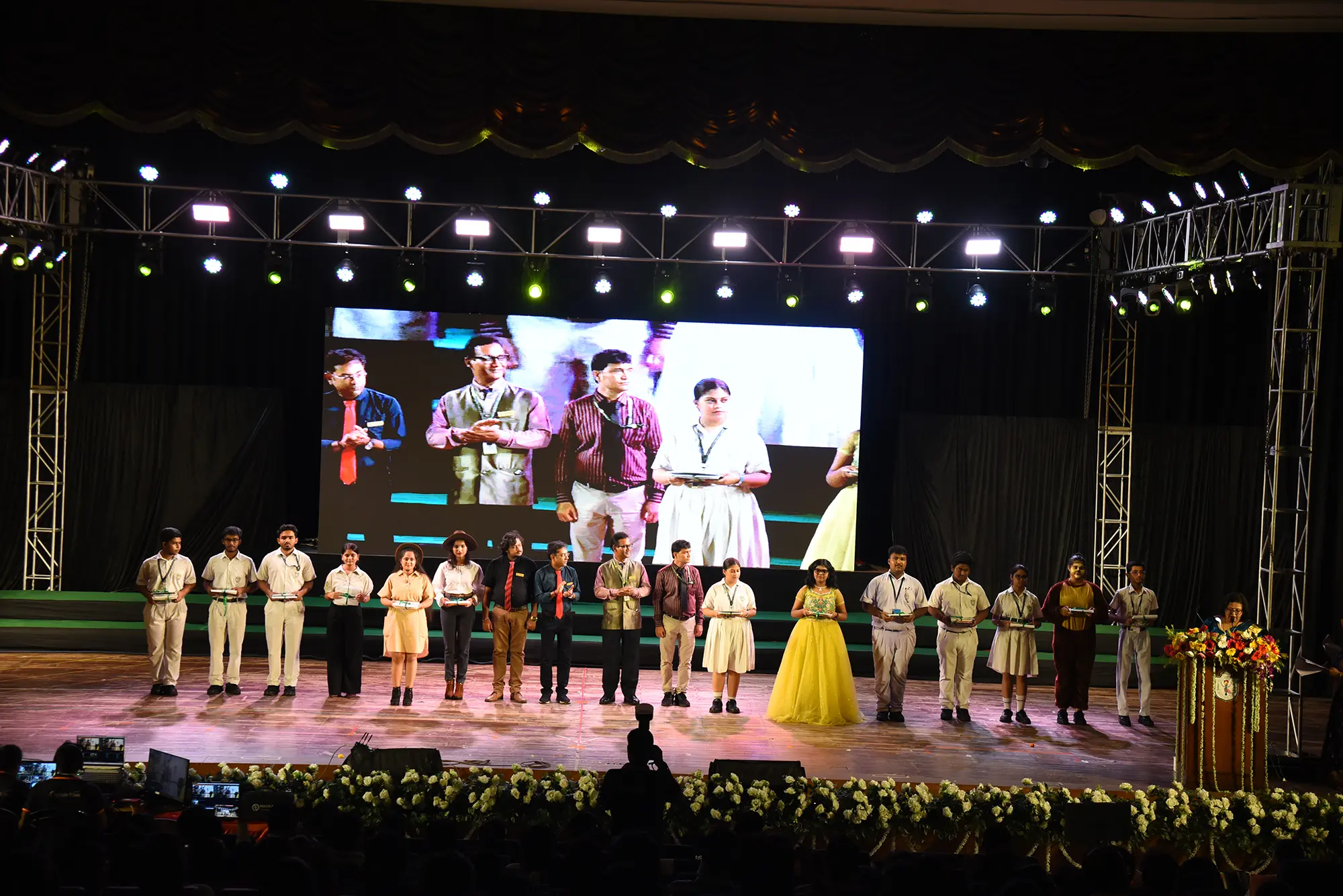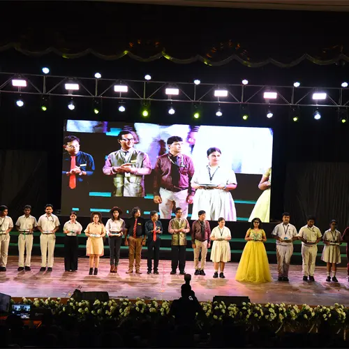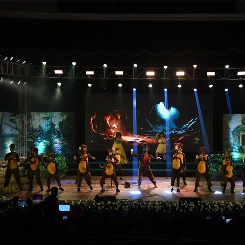 The celebration began with the ceremonial lighting of the lamp , followed by the  welcome song, that was a thematic overture creating the atmosphere for an unforgettable evening. Parents, teachers, alumni, and guests filled the hall with warmth and applause .