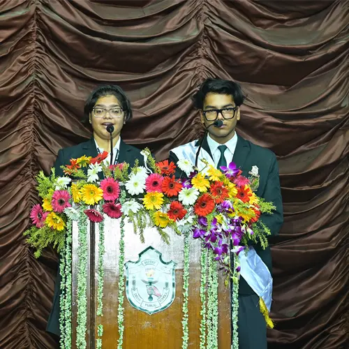 Our Principal, Sri Umesh Chand Jaiswal, presented the Annual Report, highlighting the school’s journey of achievements . The evening drew to a close with a heartfelt Vote of Thanks by Head Girl ,Sohana Roy Burman, and the National Anthem that filled every heart with pride .