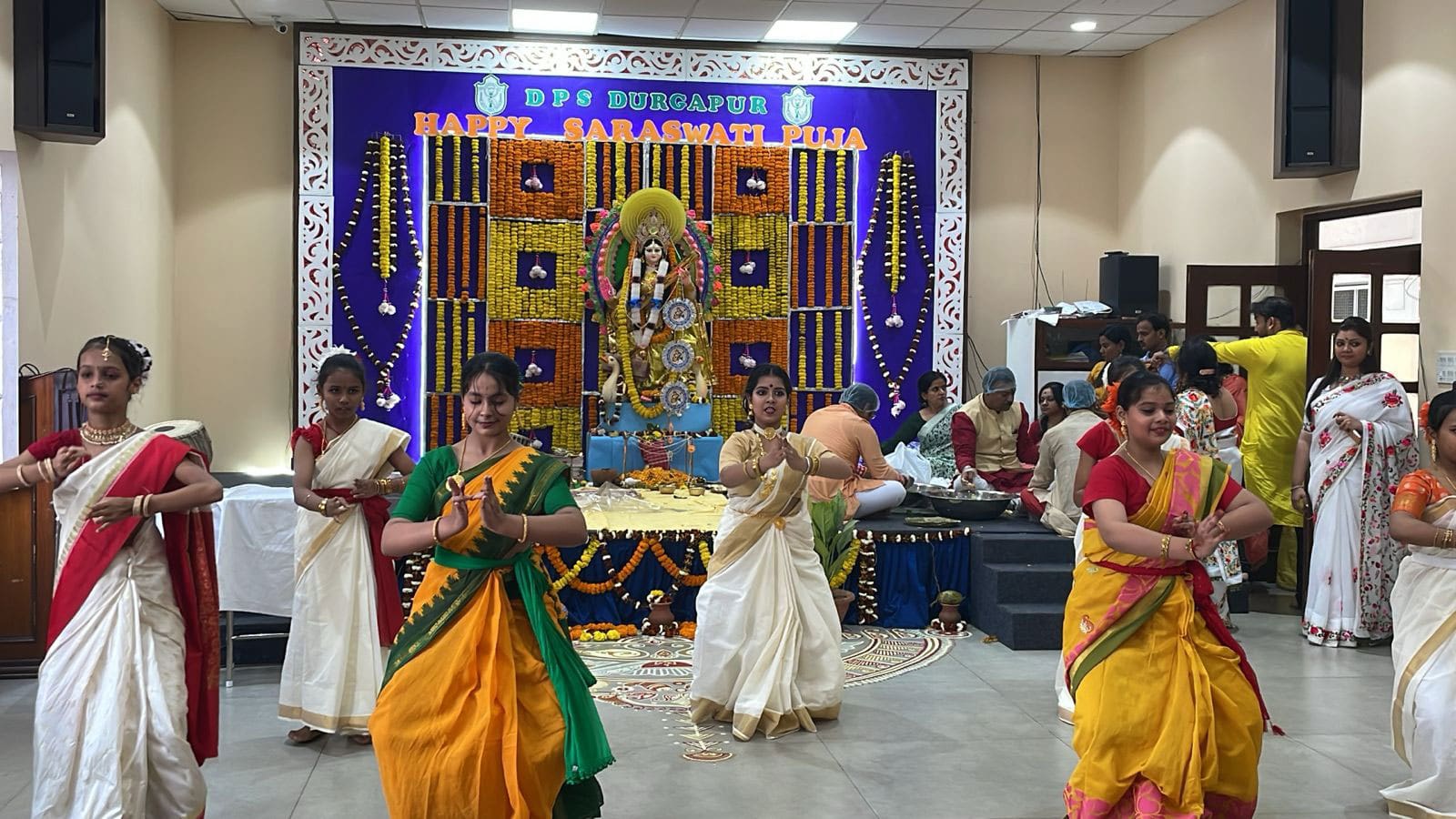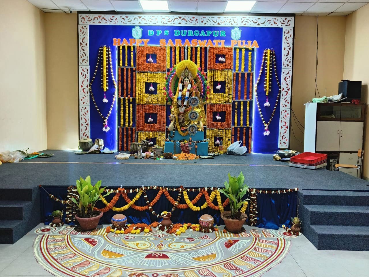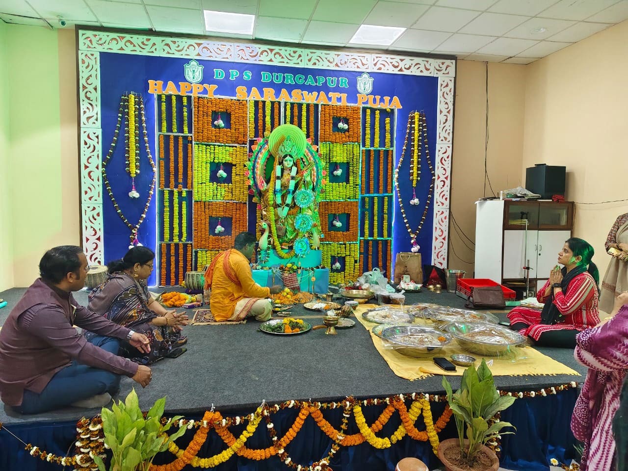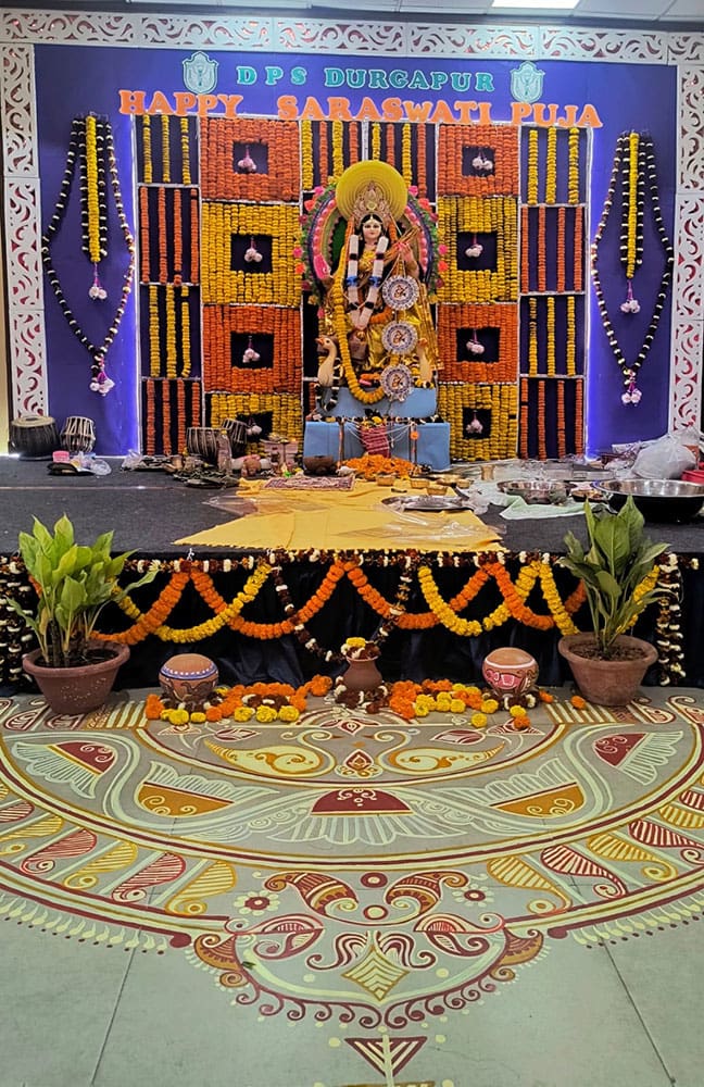 On 3rd February 2025, Delhi Public School, Durgapur resonated with devotion and creativity as students and teachers celebrated Saraswati Puja, honouring the Goddess of Knowledge and Wisdom. The school auditorium, adorned with intricate ‘alpona’ and fresh blooms, set a tranquil stage for the festivities.