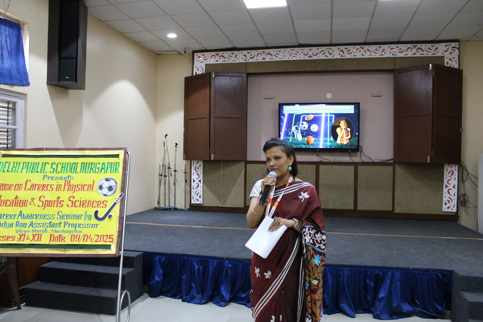 Career awareness seminar titled “Game On: Careers in Physical Education and Sports Sciences” was organized for students of Classes 11 and 12, with around 350 participants attending in two dynamic sessions on April 9,2025. The keynote speaker was Dr. Bidya Roy, Assistant Professor at Visva-Bharati, Shantiniketan. A Ph.D. holder and Gold Medalist in Yoga, Dr. Roy has earned numerous accolades, including the Chetan Chauhan Award and the ET Women Leadership Award – East India 2023. Her multifaceted expertise as a Yoga expert, International Zumba Trainer, and Rhythmic Gymnastics medalist brought a wealth of inspiration to the session.