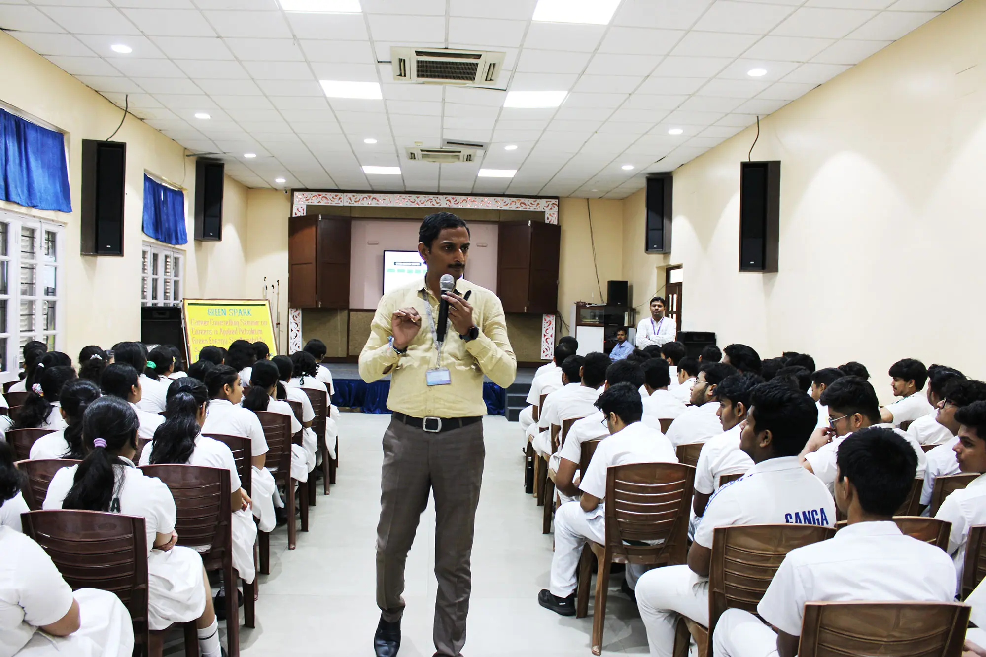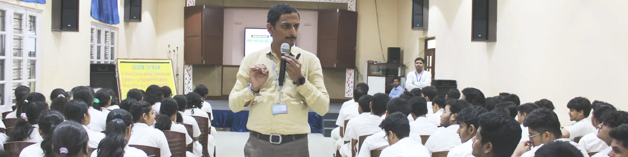 Dr. Kudapa began by discussing the pressing need for sustainable development and the role of future professionals in shaping a greener planet. He provided an overview of the petroleum industry and how innovations are leading to cleaner extraction and processing technologies. The session then shifted focus to green energy sources like solar, wind, and bioenergy, emphasizing their growing demand and the promising career opportunities in research, design, and implementation.
