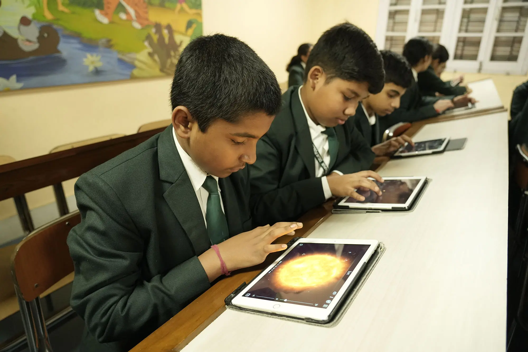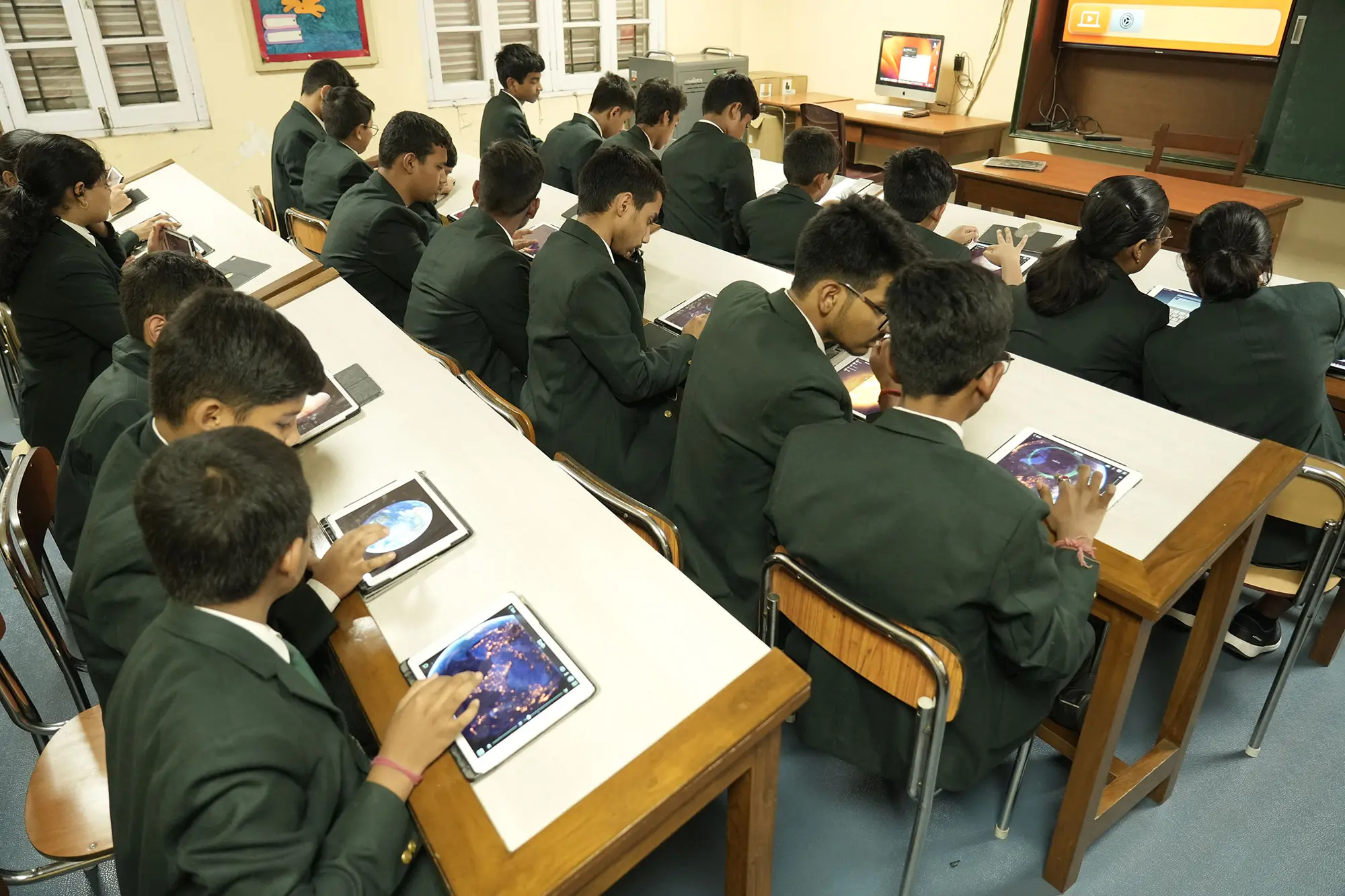 Home - Infrastructures - iPad Lab iPad Lab Digital exposure of the pre-primary students is taken care of, through training in the iPad Lab, from the very initial stages of their lives.