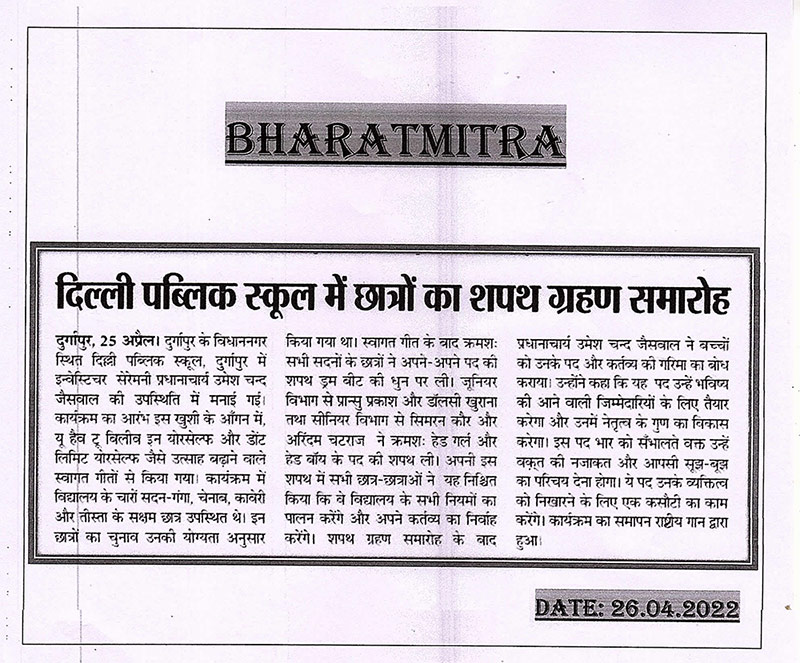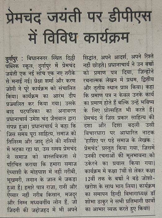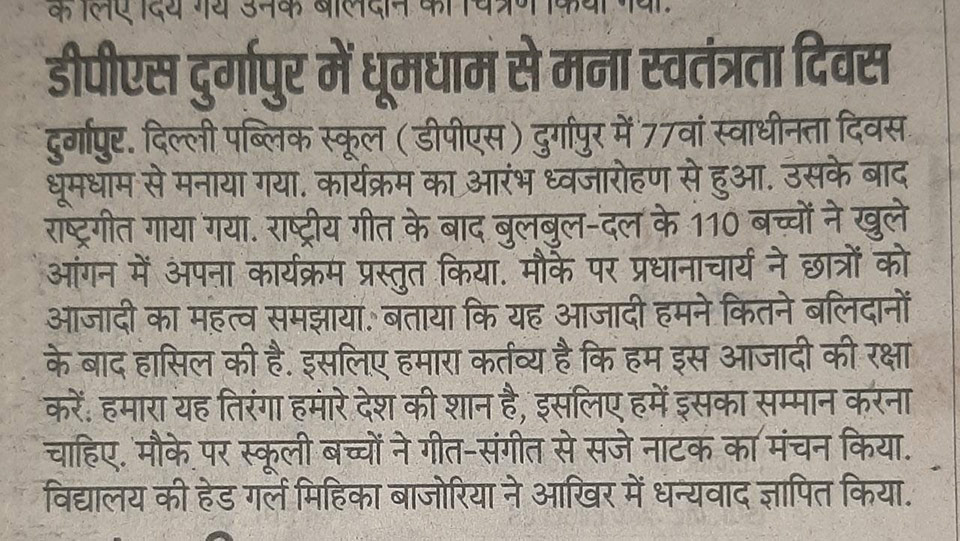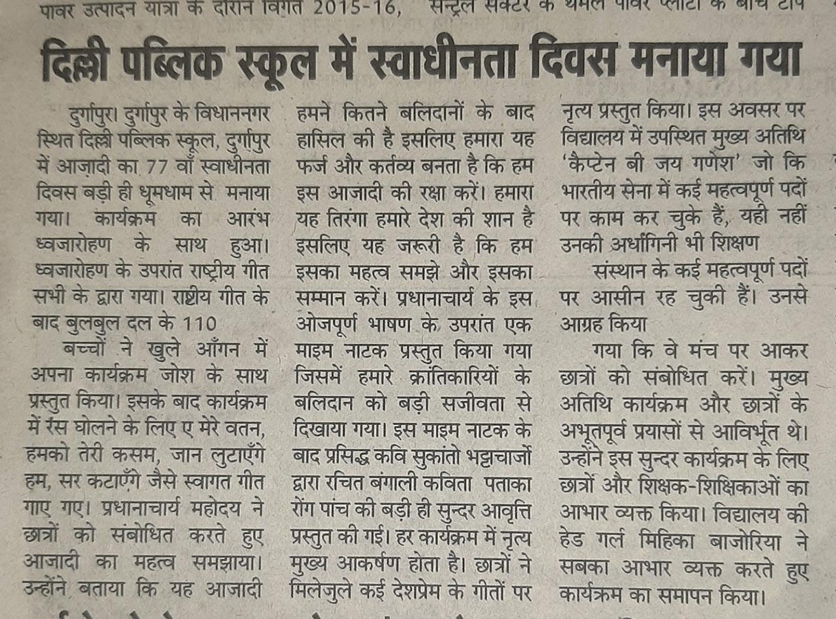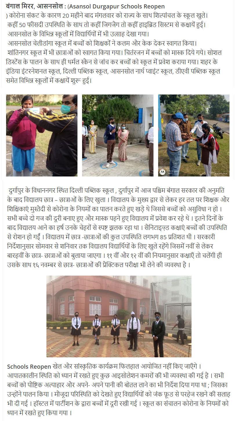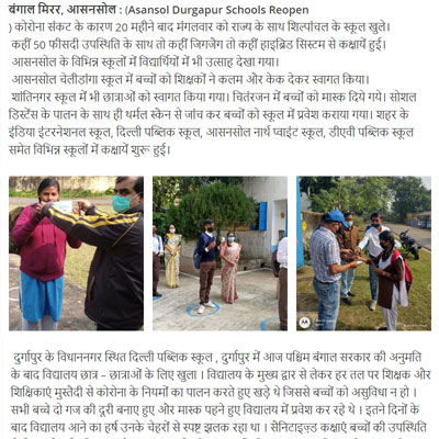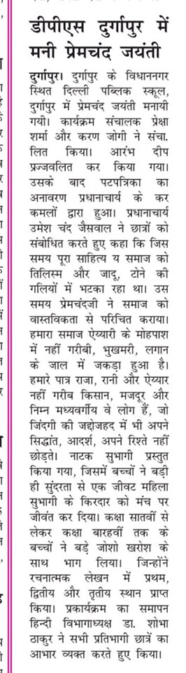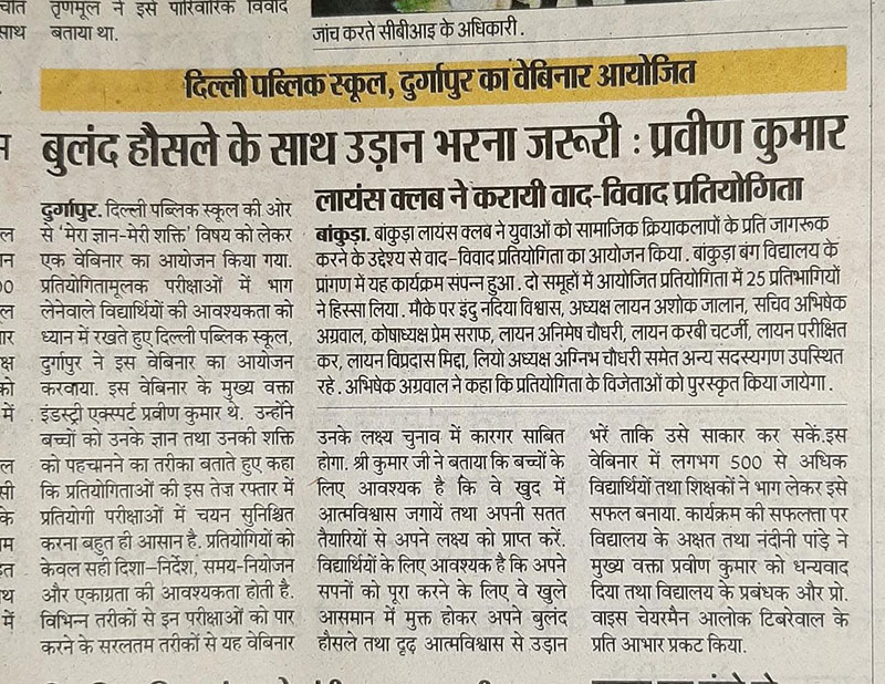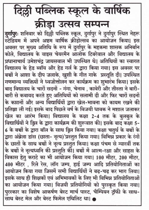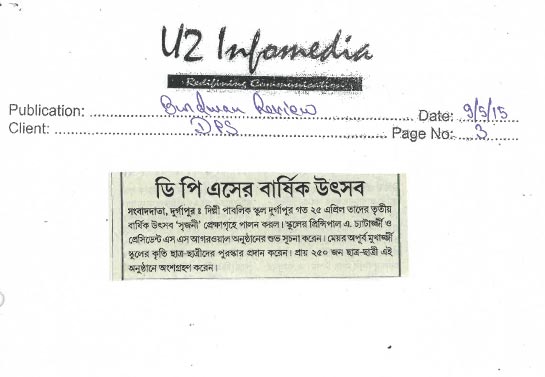 Media coverages of ‘Reverence’ of DPS Durgapur
