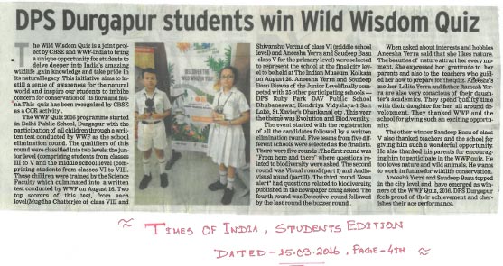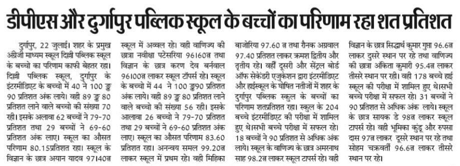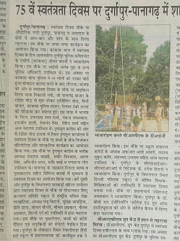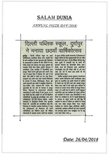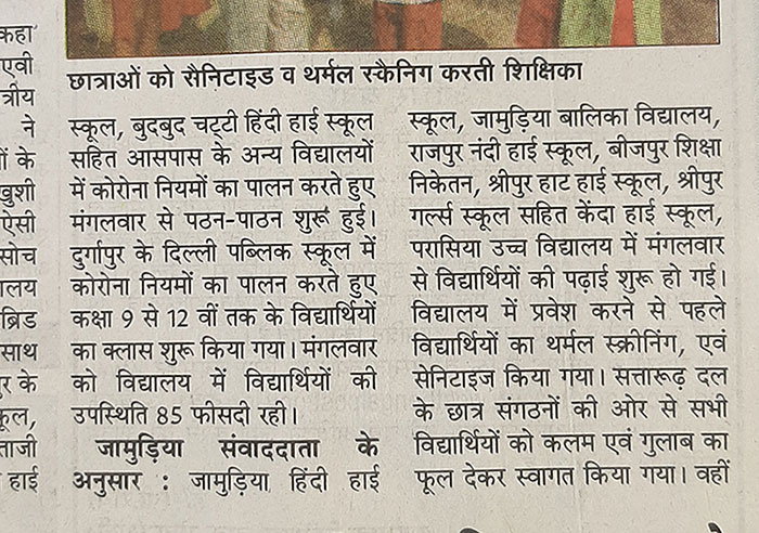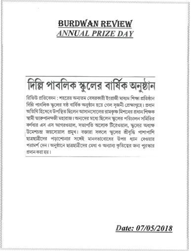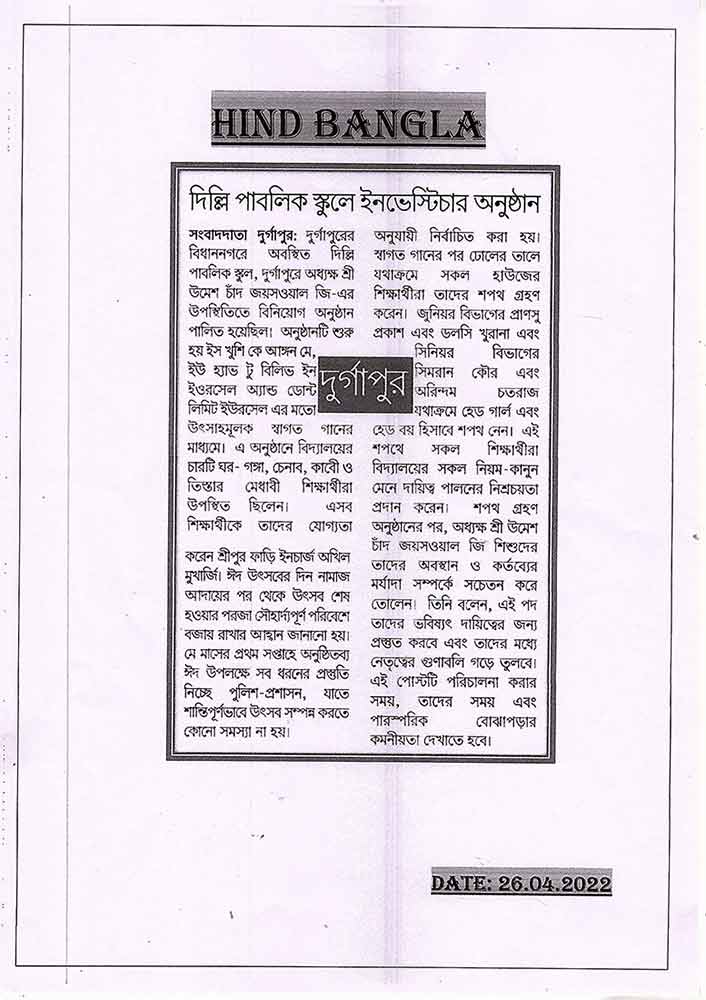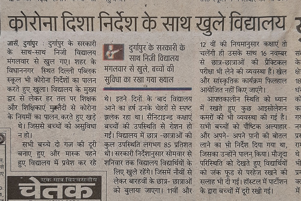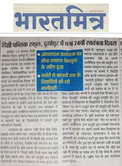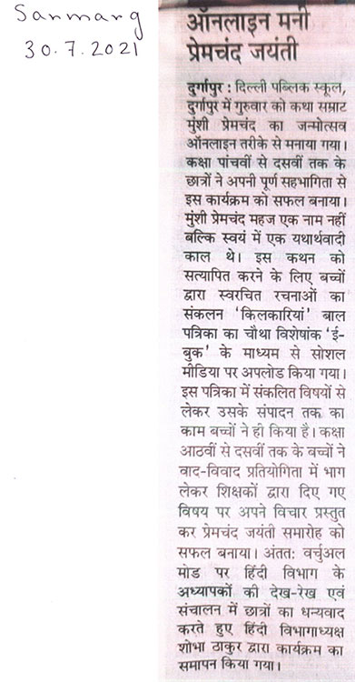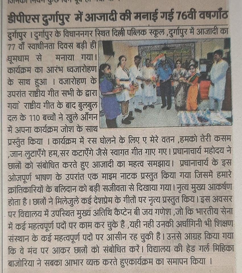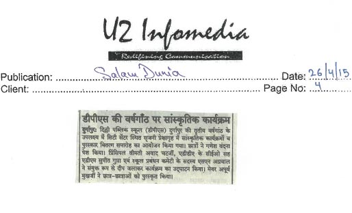 Media coverages of ‘Reverence’ of DPS Durgapur
