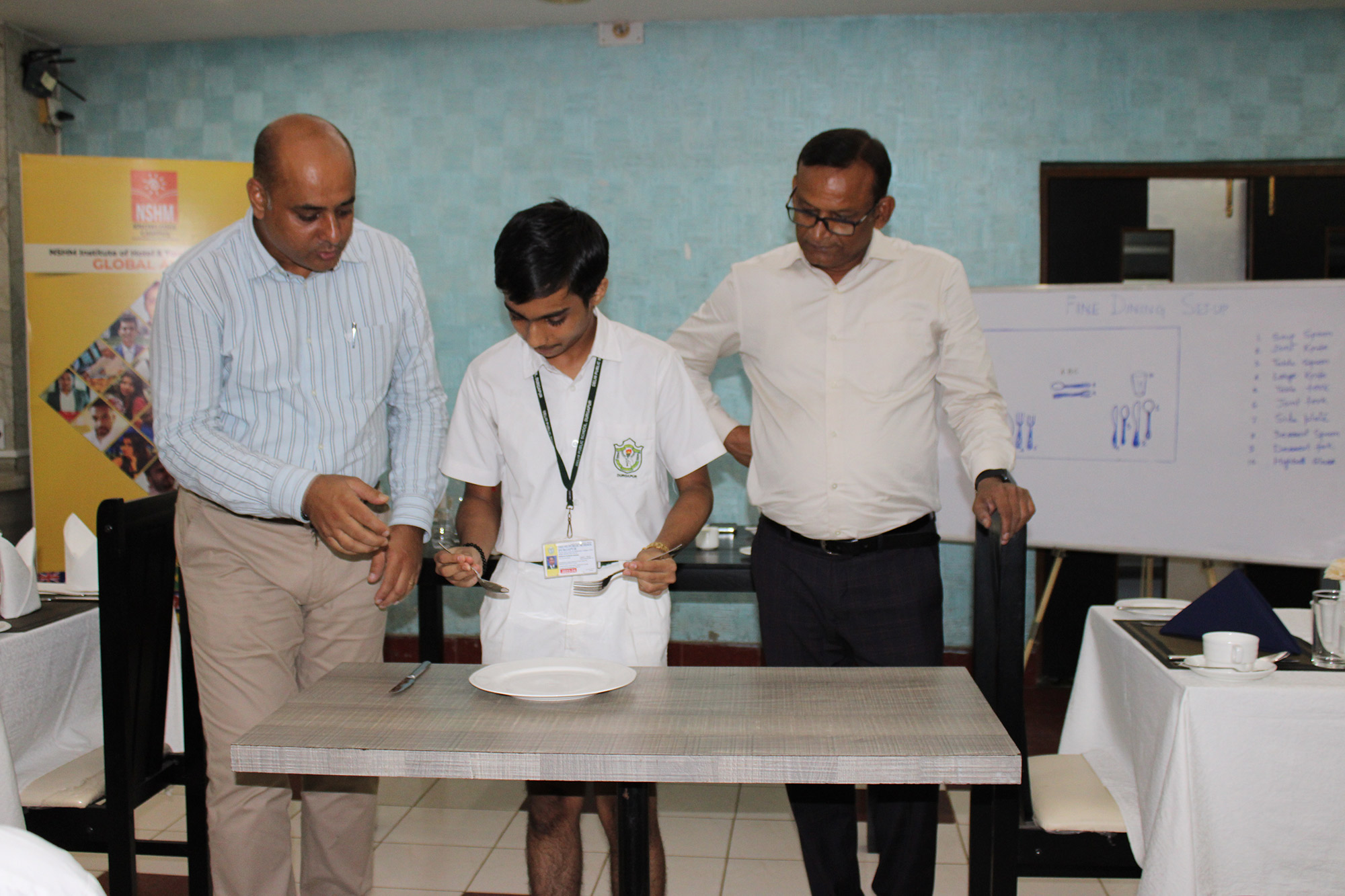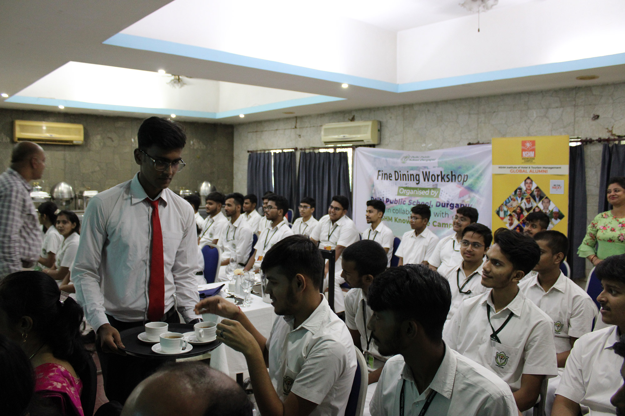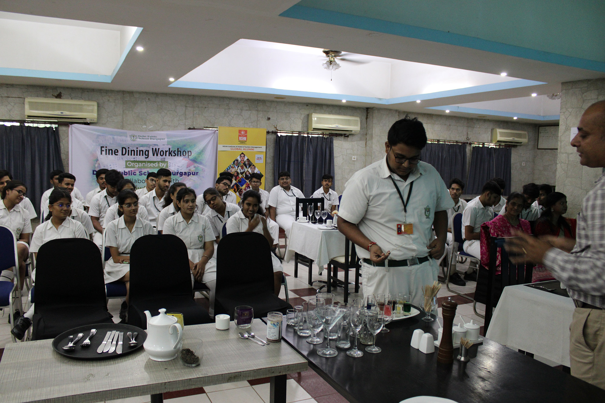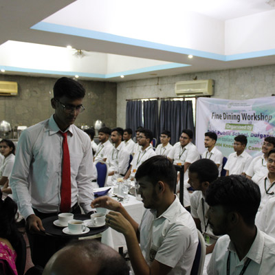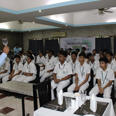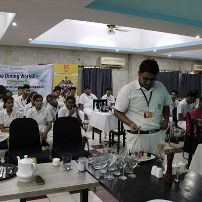 Home - Workshop & Training Programs - Fine Dining Workshop at NSHM Knowledge Campus Fine Dining Workshop at NSHM Knowledge Campus Widening the scope of learning is a mandate for preparing Global Citizens. Dps Durgapur chooses to walk an extra mile in training the boarders to the various etiquettes of fine dining. A workshop by NSHM , created opportunities for them.