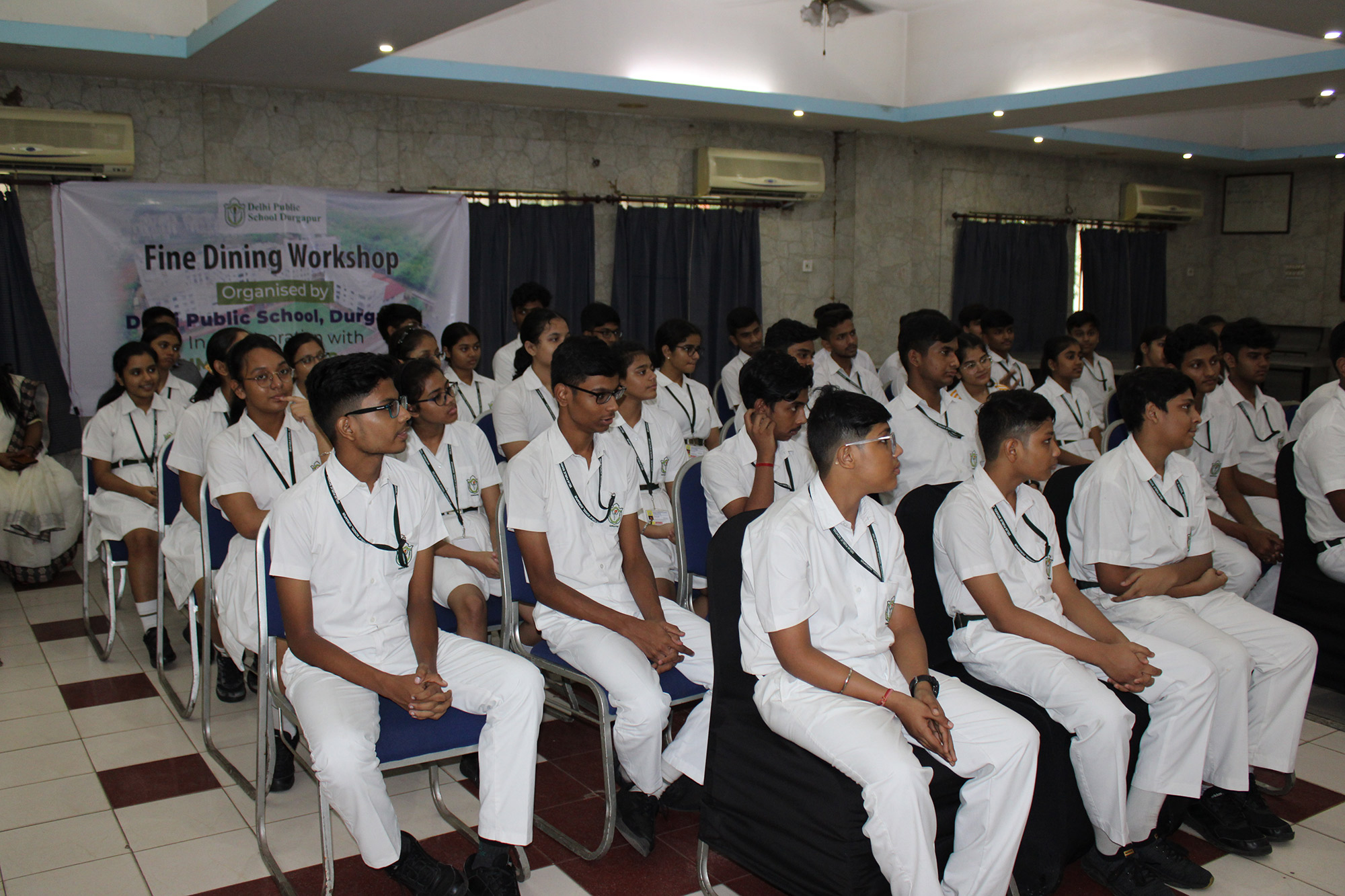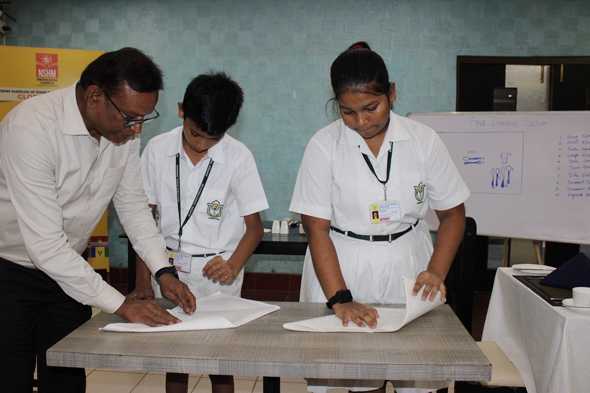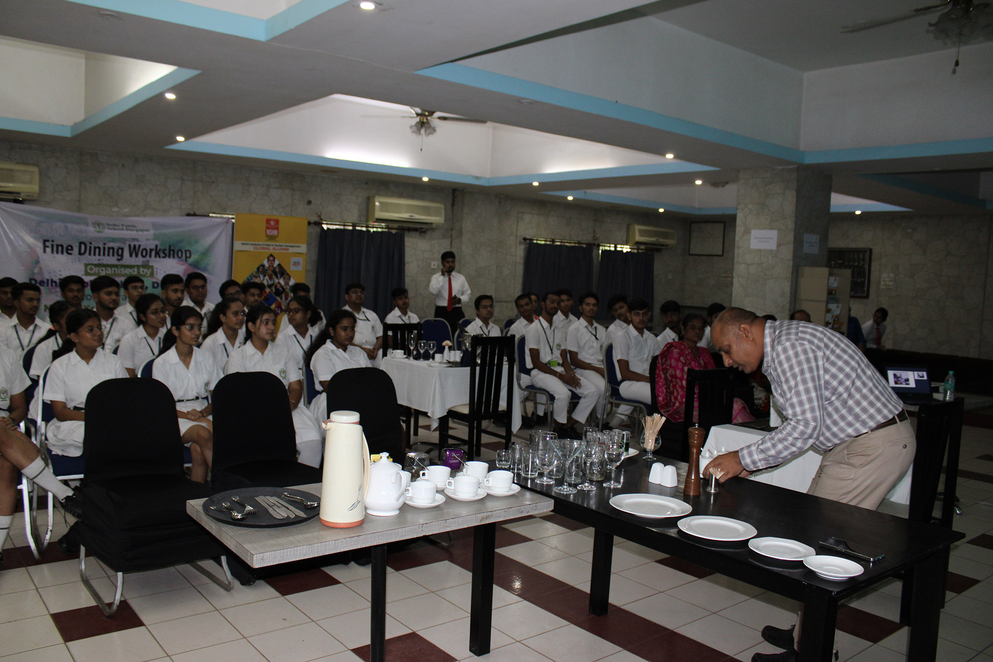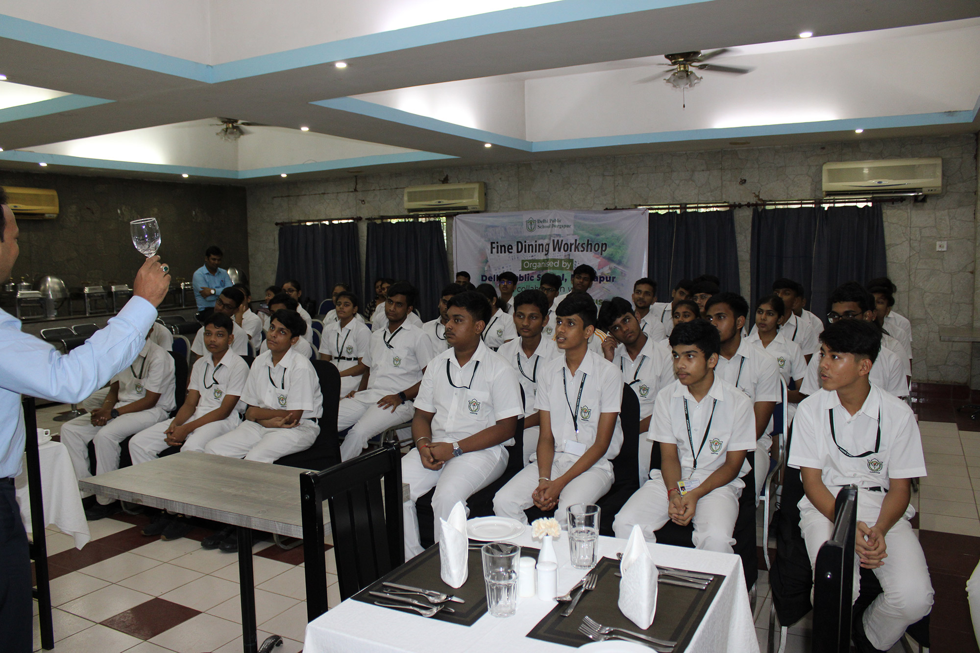 Home - Workshop & Training Programs - Fine Dining Workshop at NSHM Knowledge Campus Fine Dining Workshop at NSHM Knowledge Campus Widening the scope of learning is a mandate for preparing Global Citizens. Dps Durgapur chooses to walk an extra mile in training the boarders to the various etiquettes of fine dining. A workshop by NSHM , created opportunities for them.