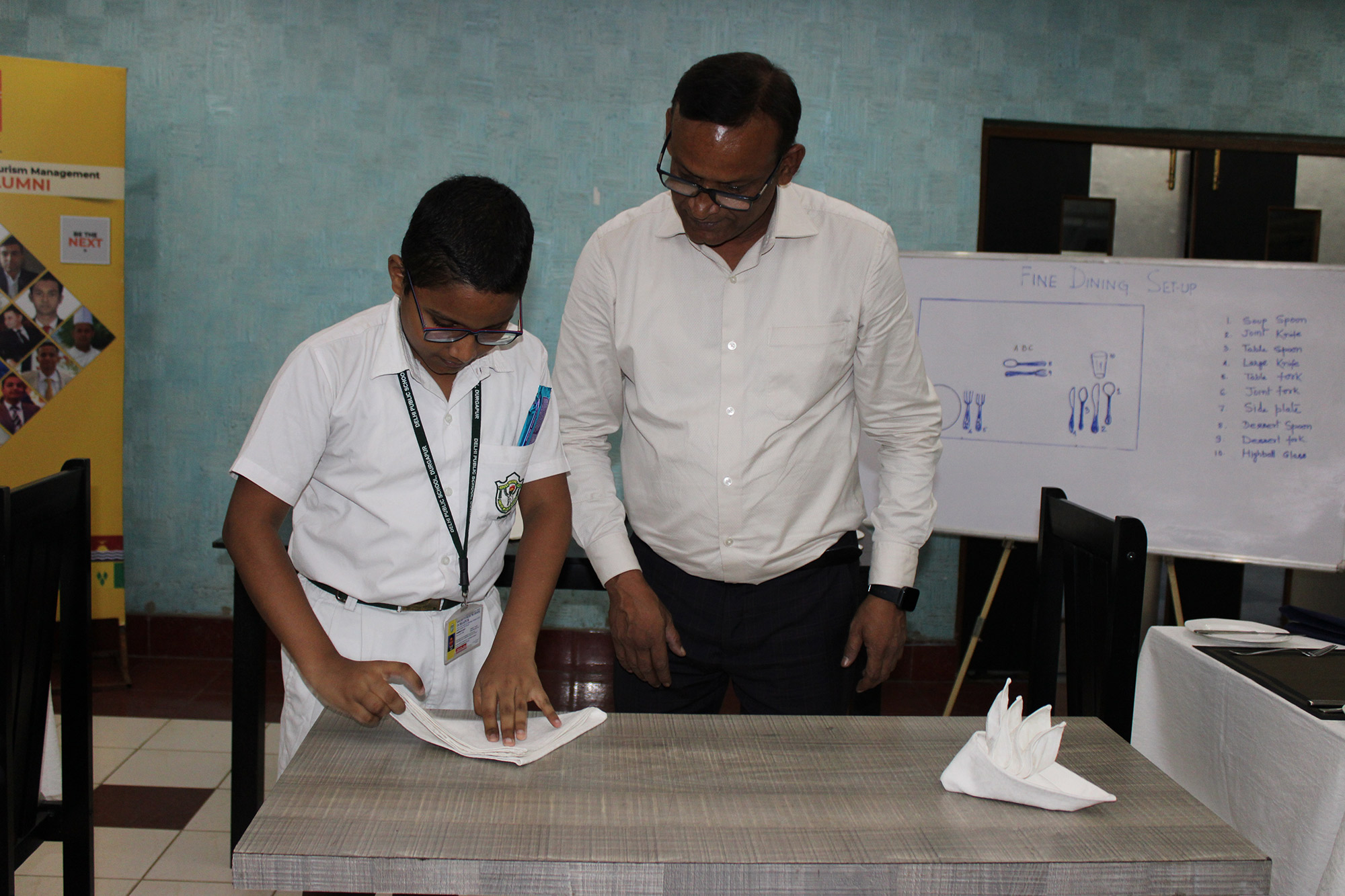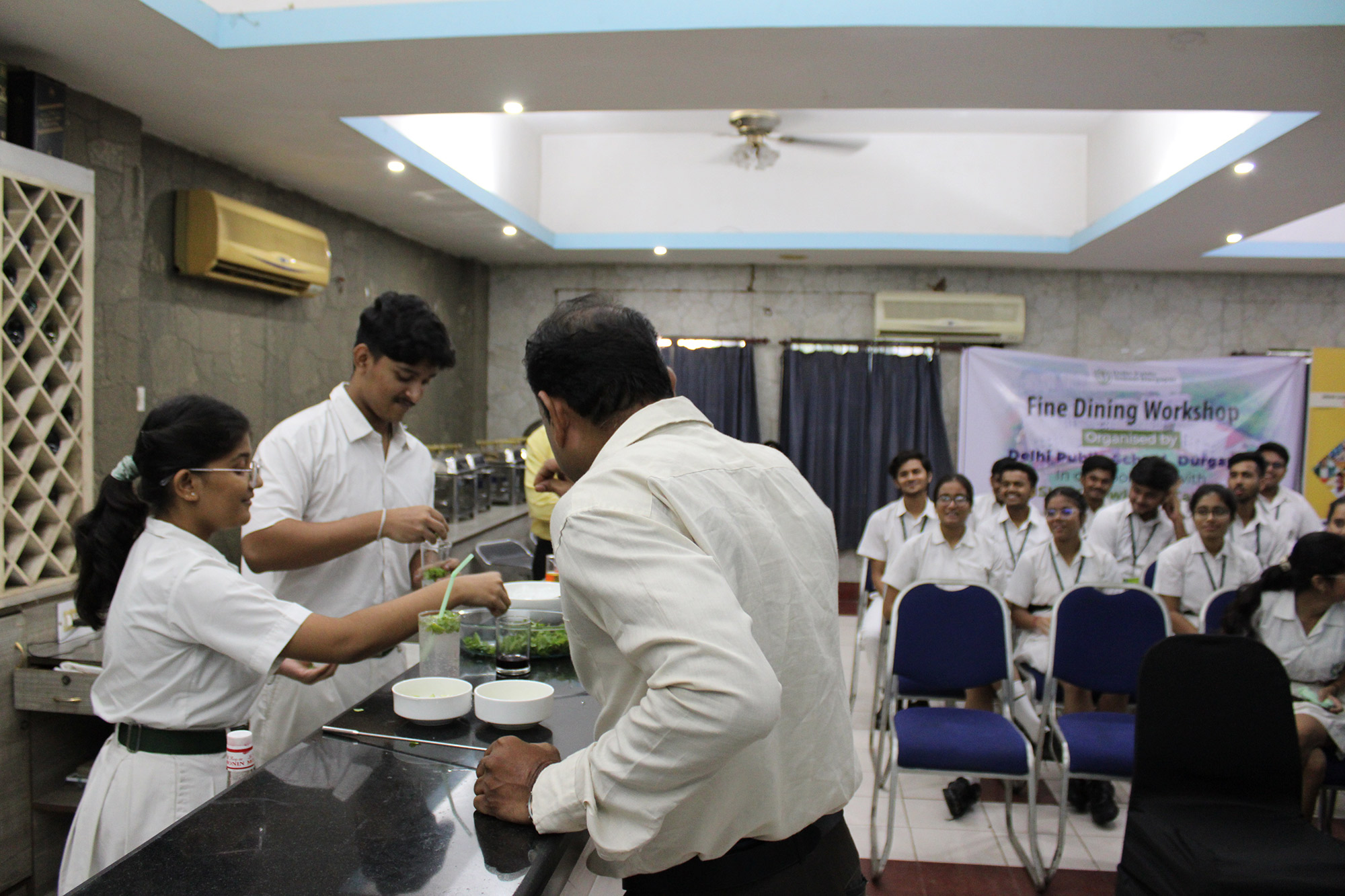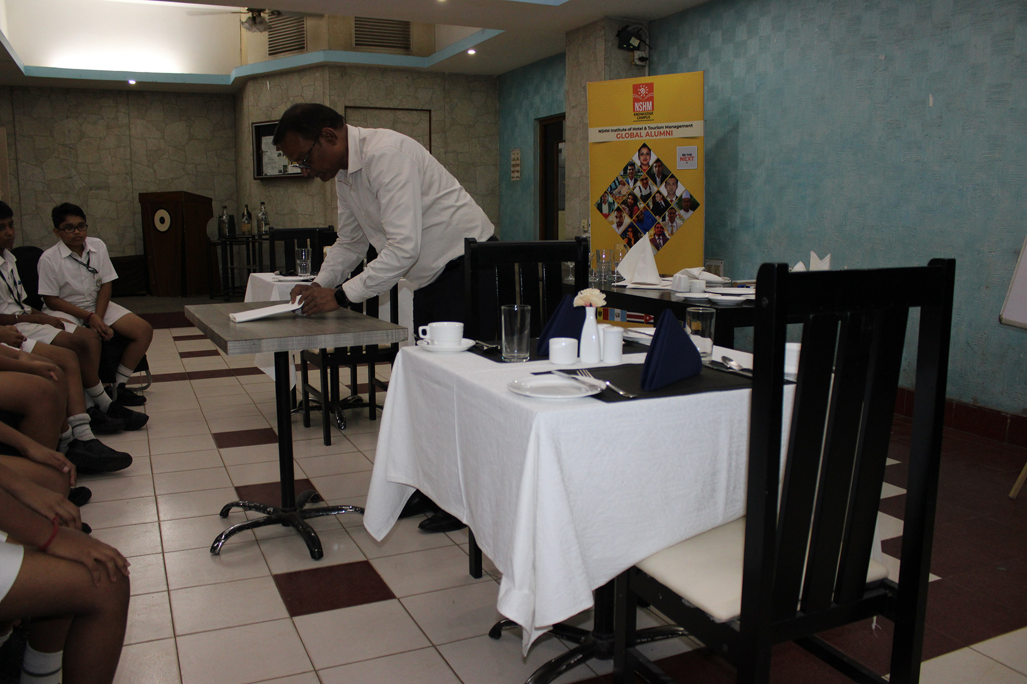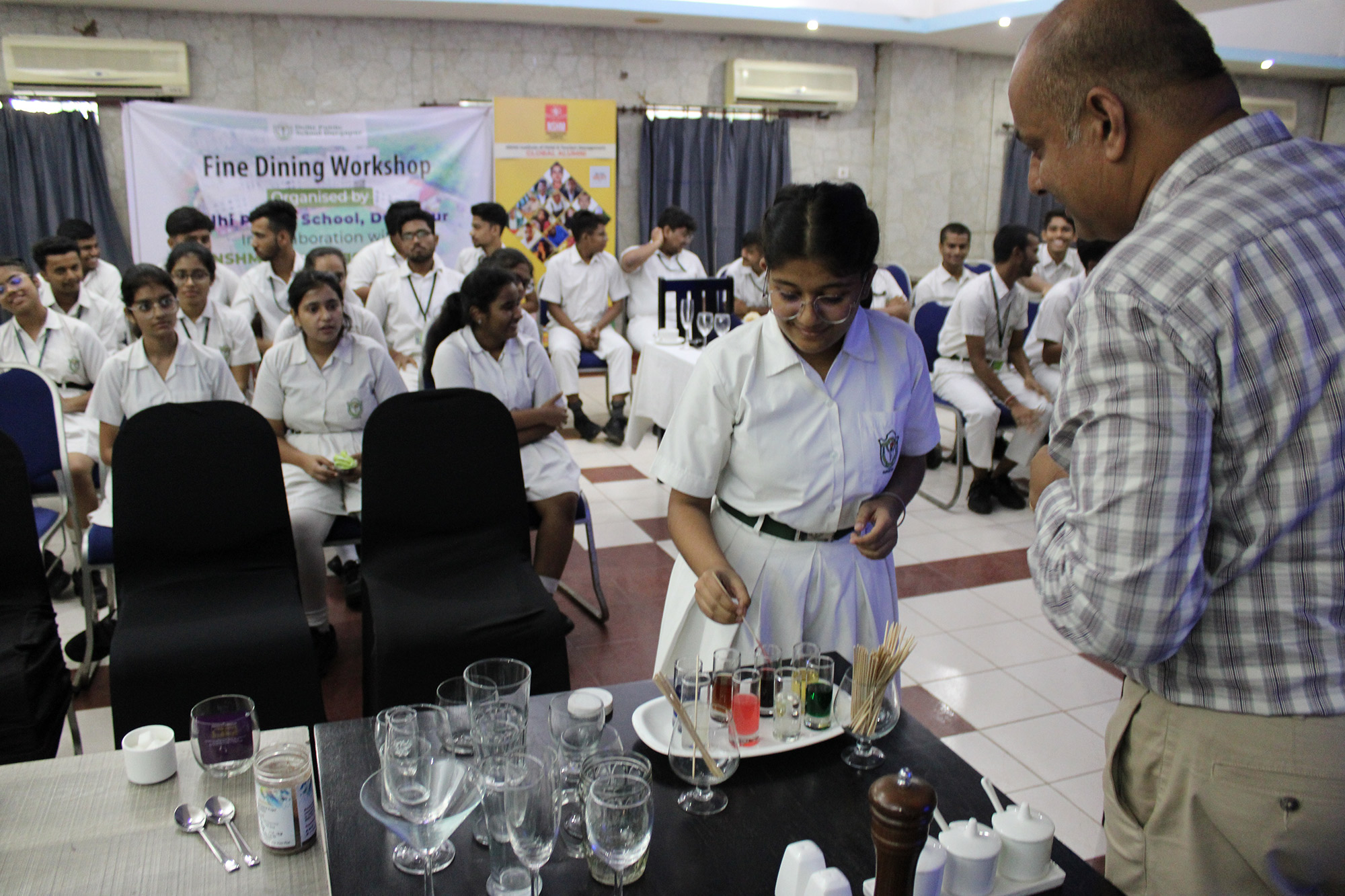 Home - Workshop & Training Programs - Fine Dining Workshop at NSHM Knowledge Campus Fine Dining Workshop at NSHM Knowledge Campus Widening the scope of learning is a mandate for preparing Global Citizens. Dps Durgapur chooses to walk an extra mile in training the boarders to the various etiquettes of fine dining. A workshop by NSHM , created opportunities for them.