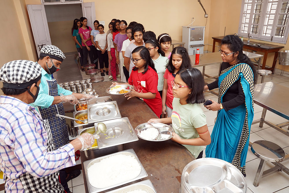- Hygienic Kitchen – Meals are cooked under strict supervision in the most hygienic way. The menu is well planned, and special meals are provided on festival days.