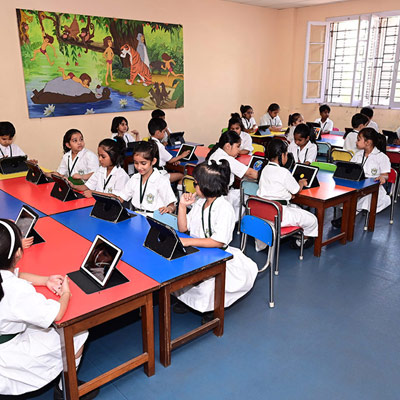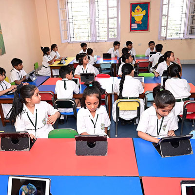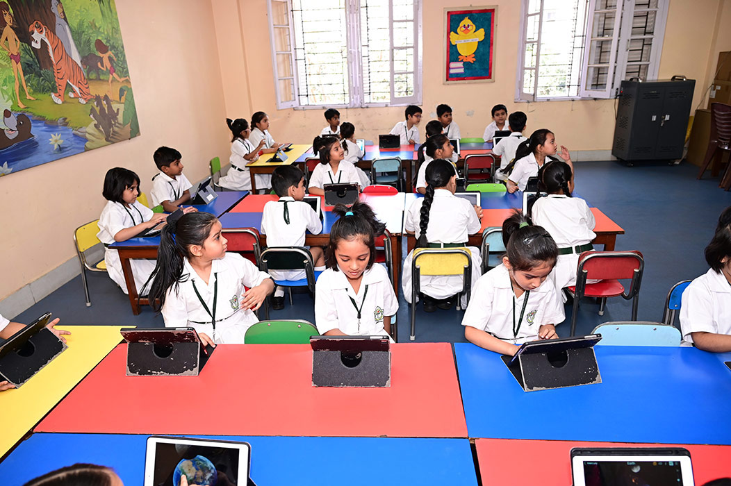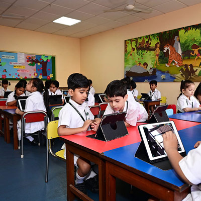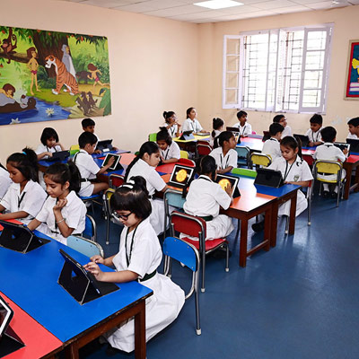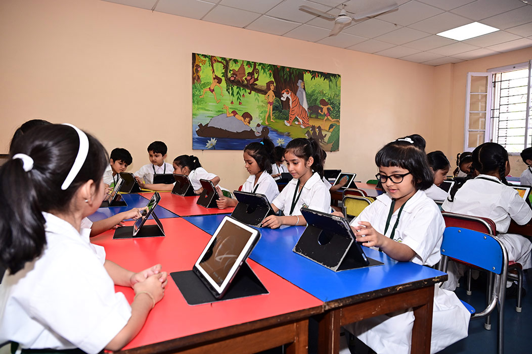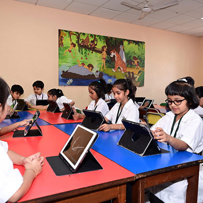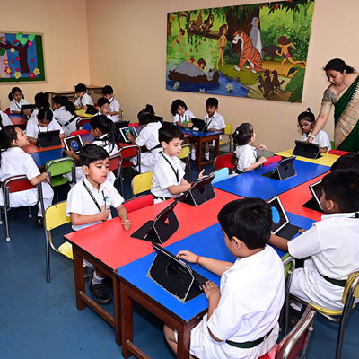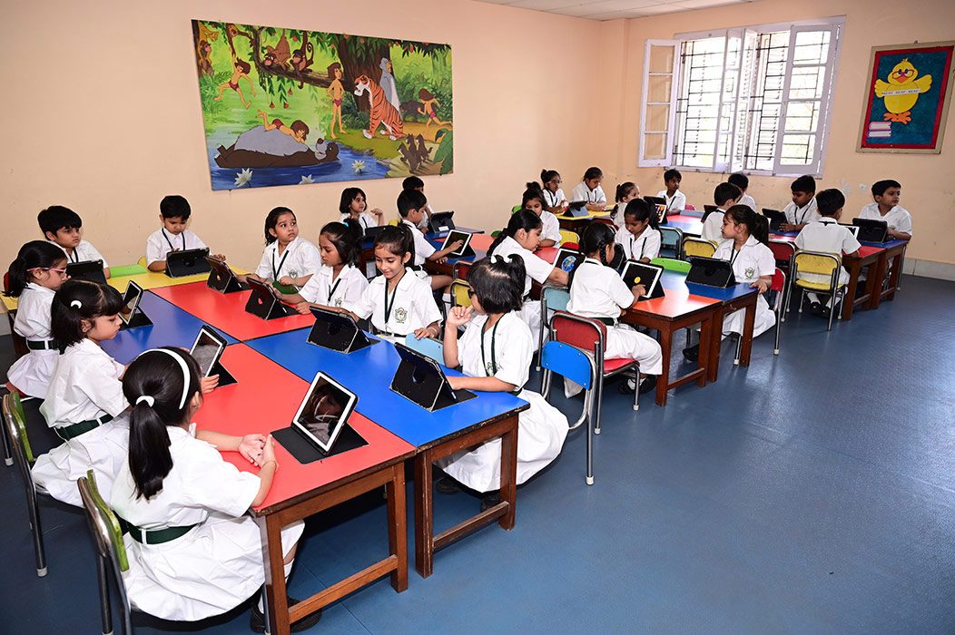 Home - Infrastructures - iPad Lab iPad Lab Digital exposure of the pre-primary students is taken care of, through training in the iPad Lab, from the very initial stages of their lives.