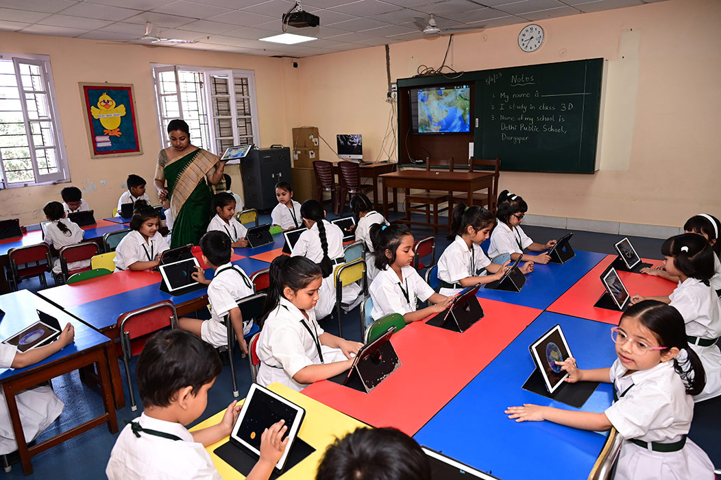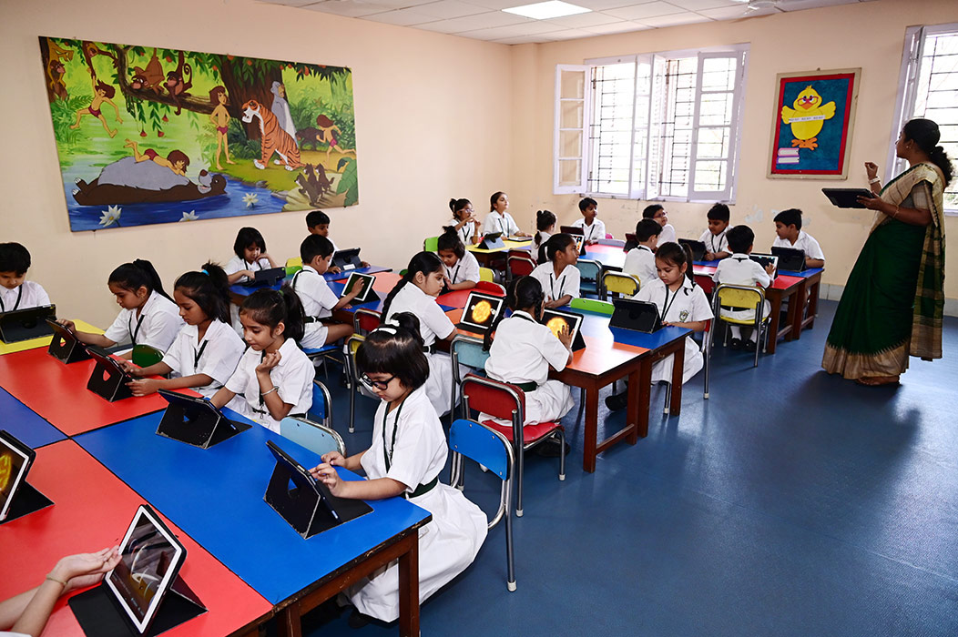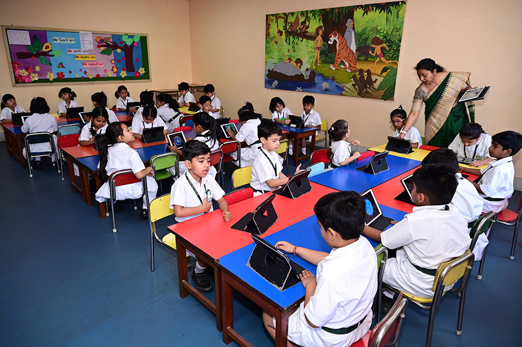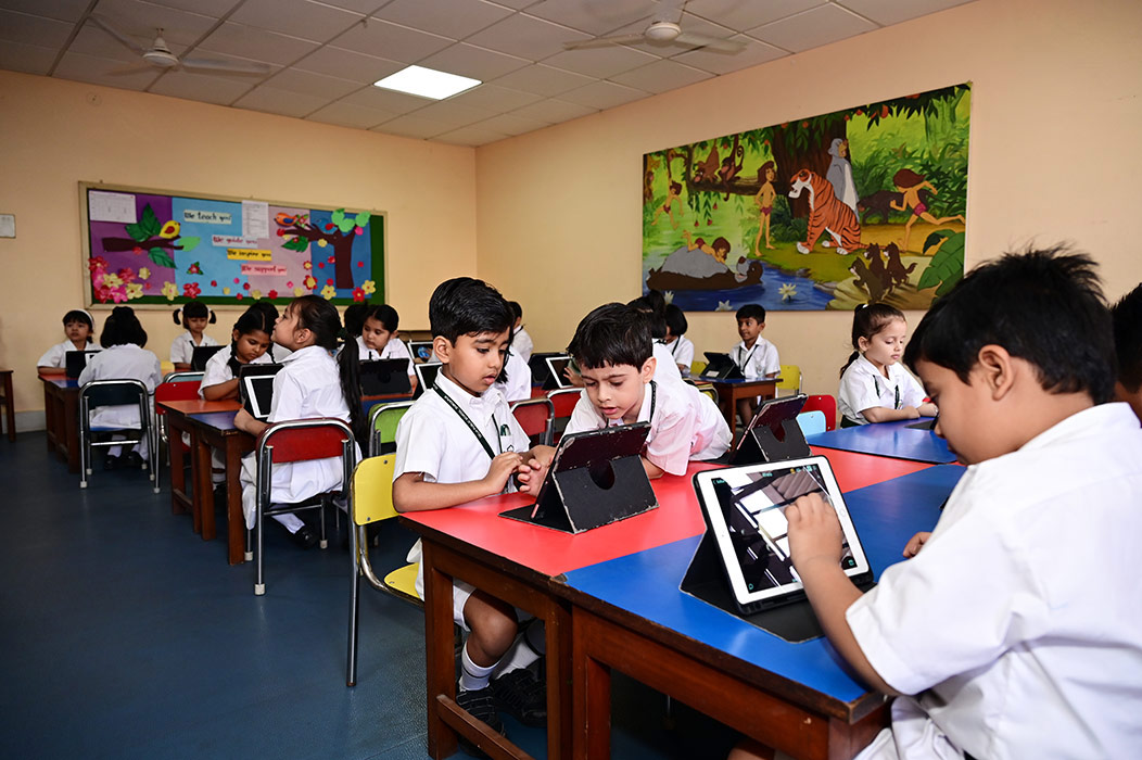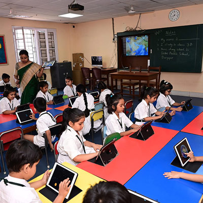 Home - Infrastructures - iPad Lab iPad Lab Digital exposure of the pre-primary students is taken care of, through training in the iPad Lab, from the very initial stages of their lives.